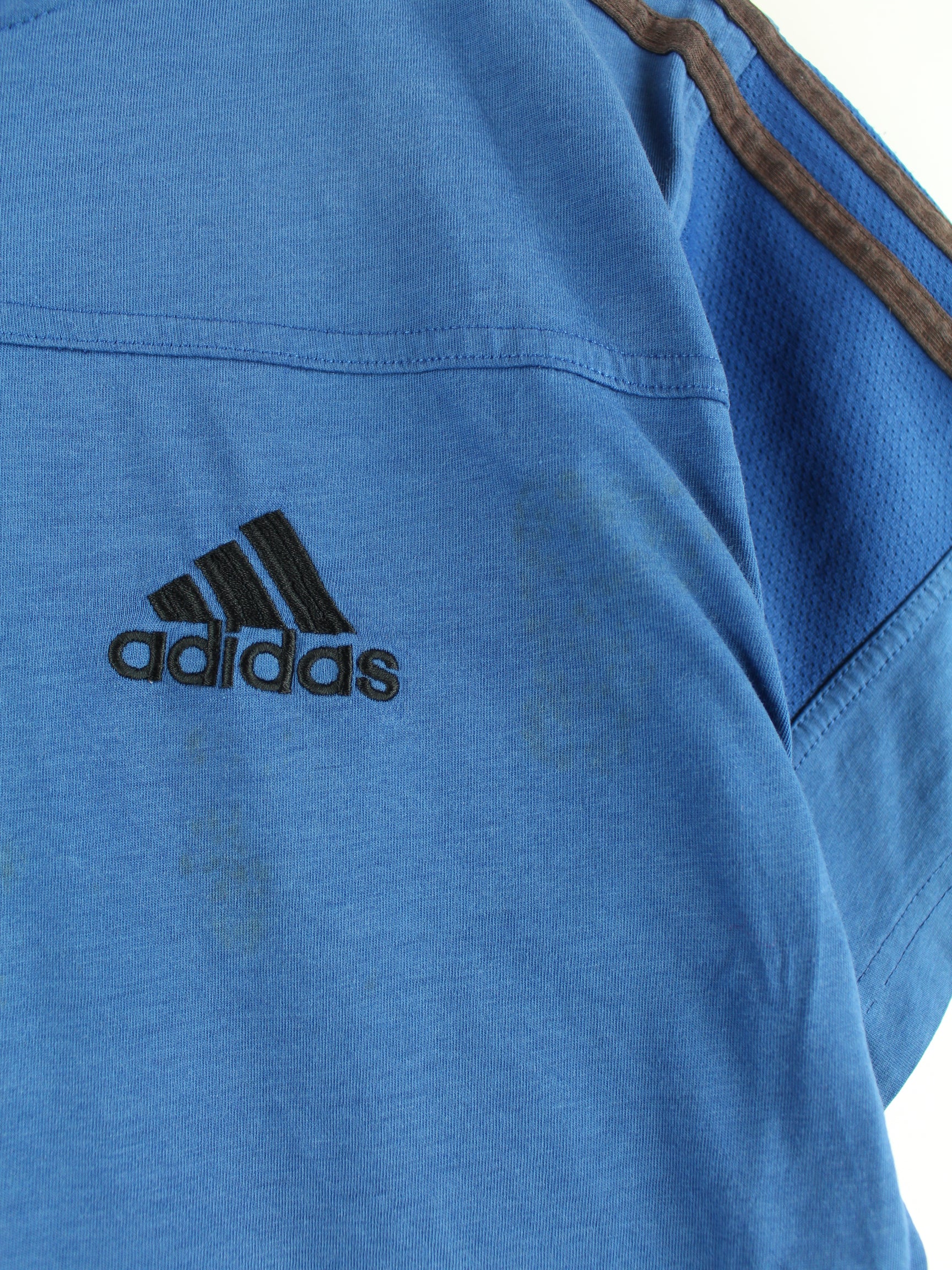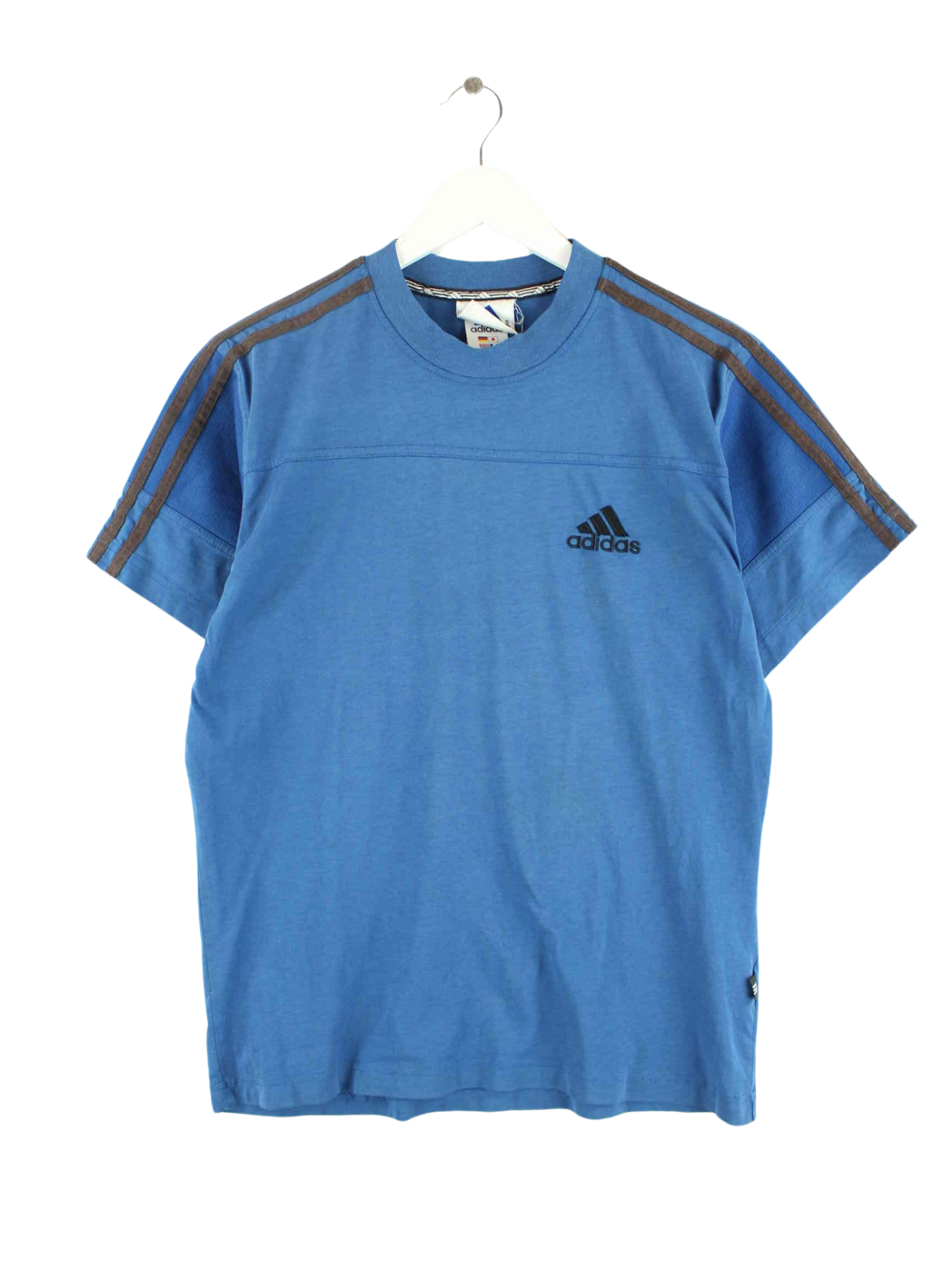 T-Shirt von Adidas in Größe S aus den 90'ern. Es ist aus einer Baumwollmischung hergestellt und in Blau im Bestand.