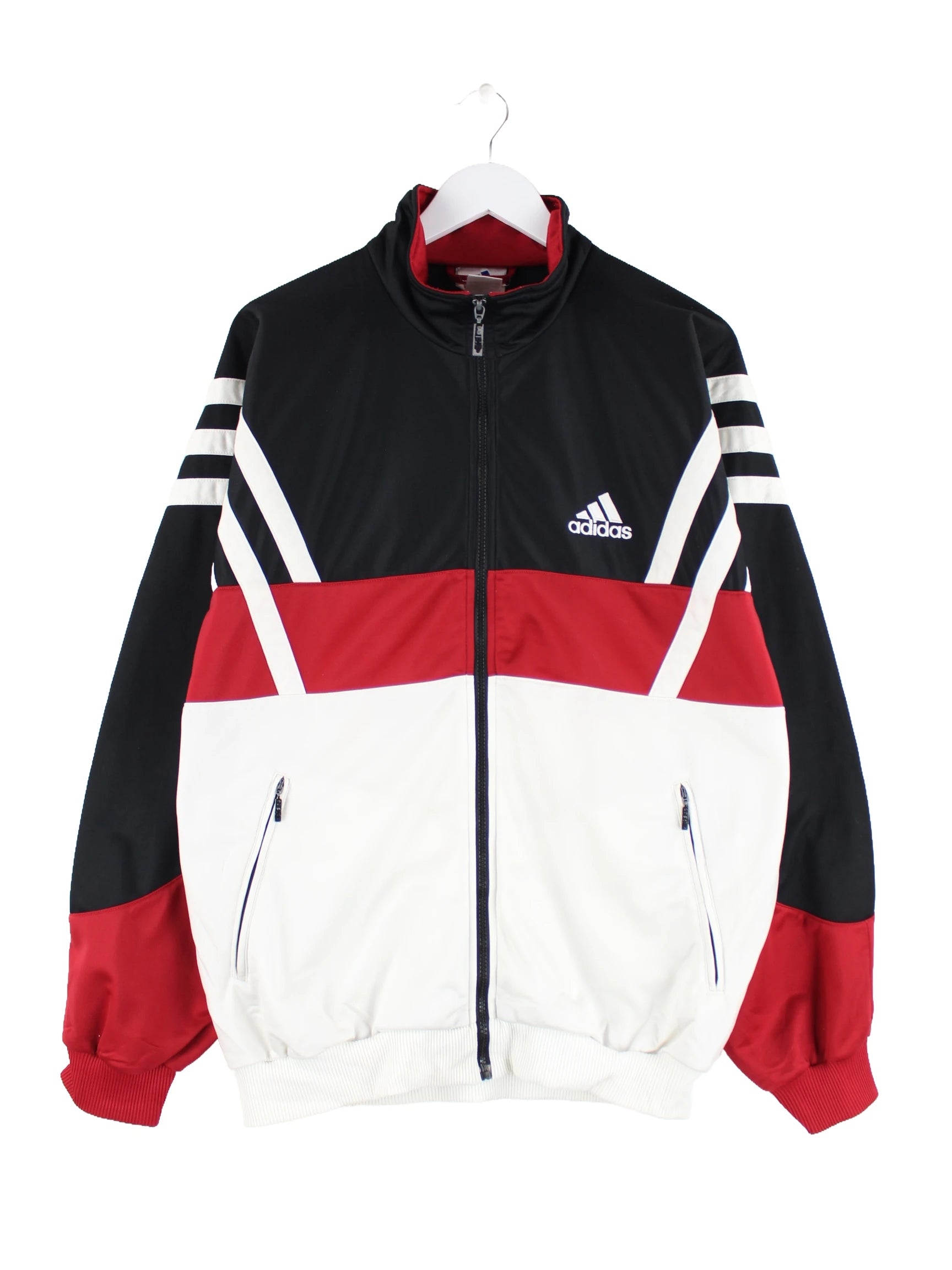 Trainingsjacke der Brand Adidas in Größe XXL aus den 90'ern. Sie ist aus Synthetik produziert und in bunten Farben auf Lager.