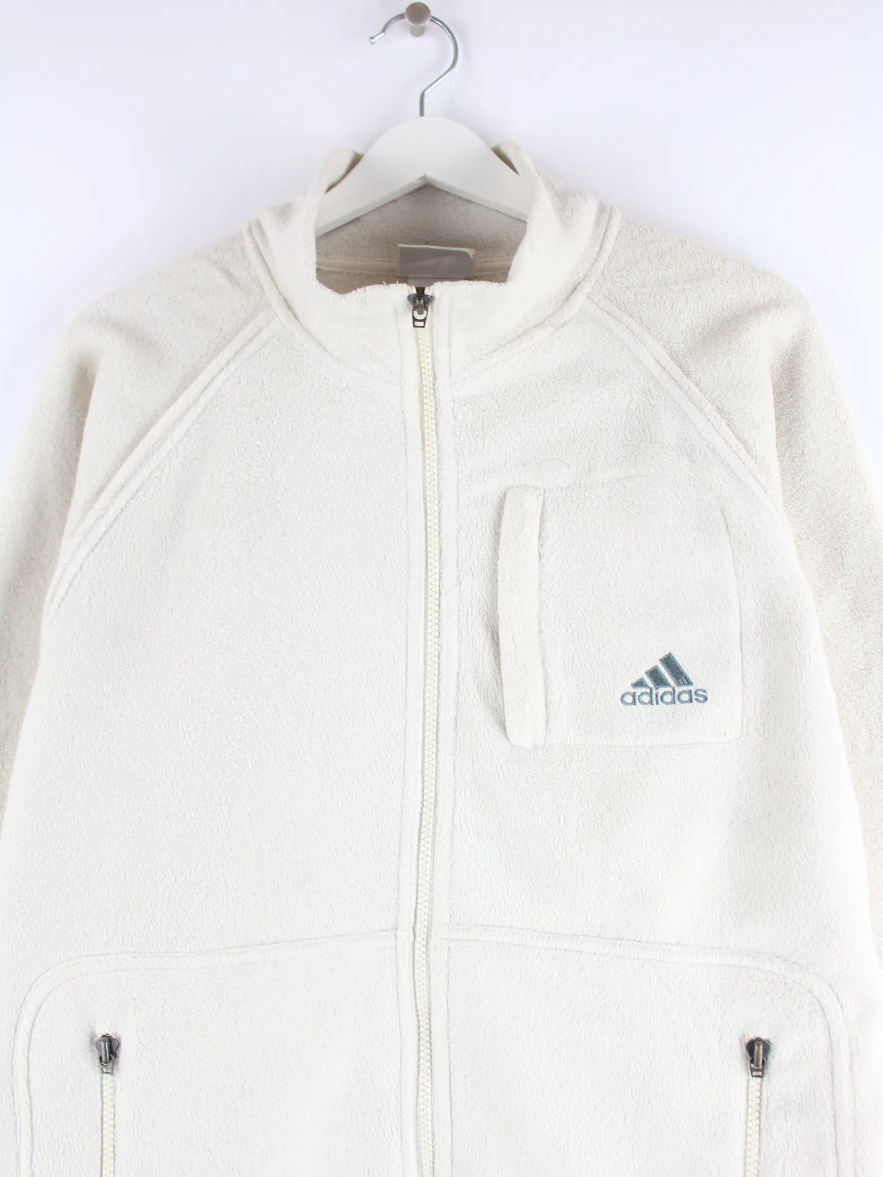 Leichte Jacke vom Brand Adidas in Größe S aus den 90'ern. Sie ist aus angenehmem Fleece hergestellt und in Beige im Bestand.