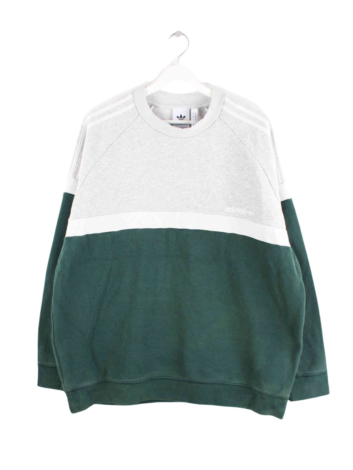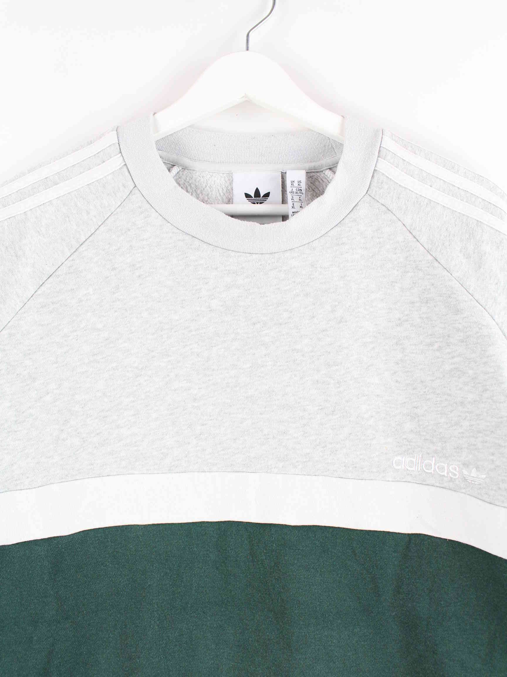 Grauer Sweater mit Stickereien vom Label Adidas in Größe XL. Er ist aus einer Baumwollmischung gefertigt und in sehr gutem Zustand im Bestand.