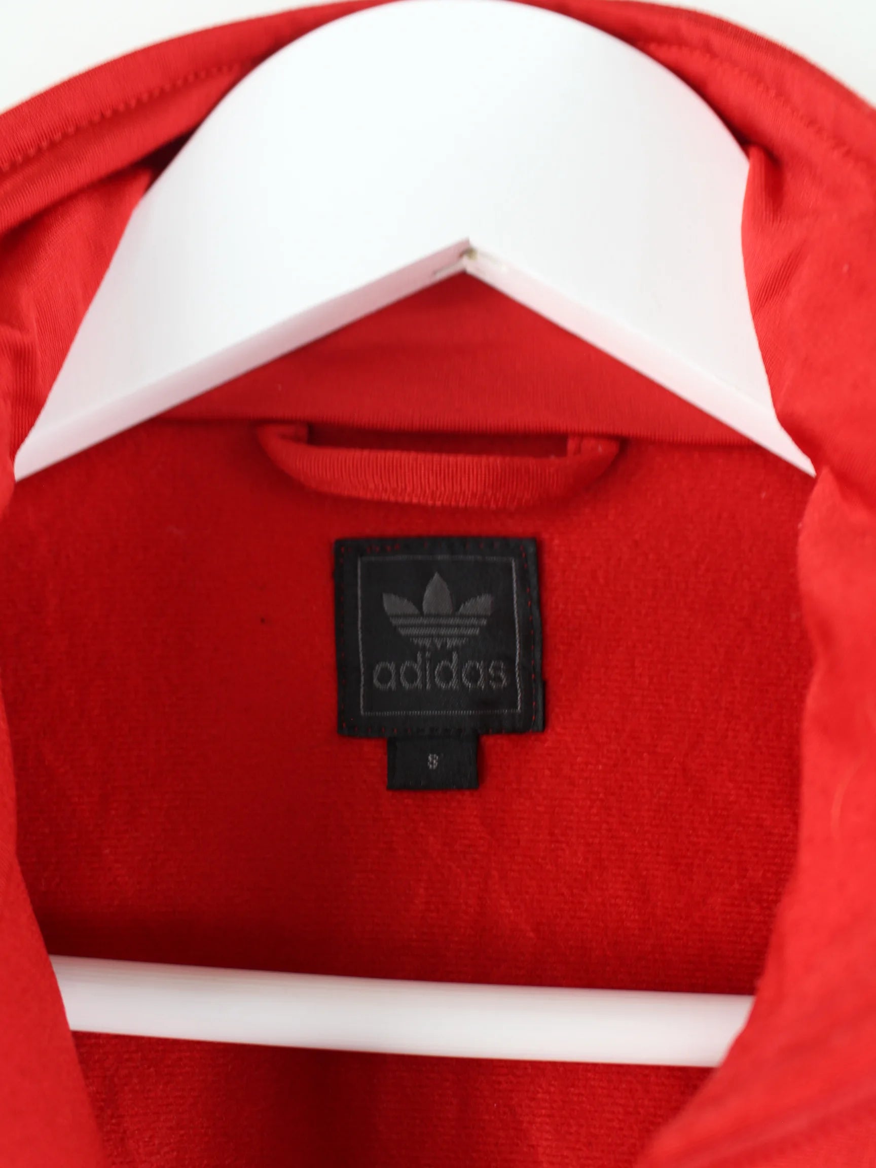 Trainingsjacke von Adidas in Größe S aus Anfang der 2000'er. Sie ist aus Synthetik hergestellt und in Rot bei uns vorrätig.