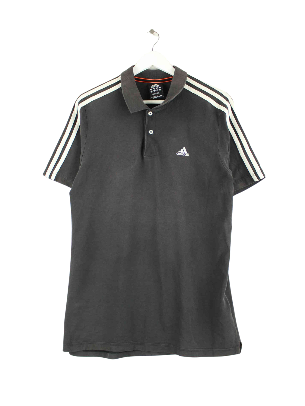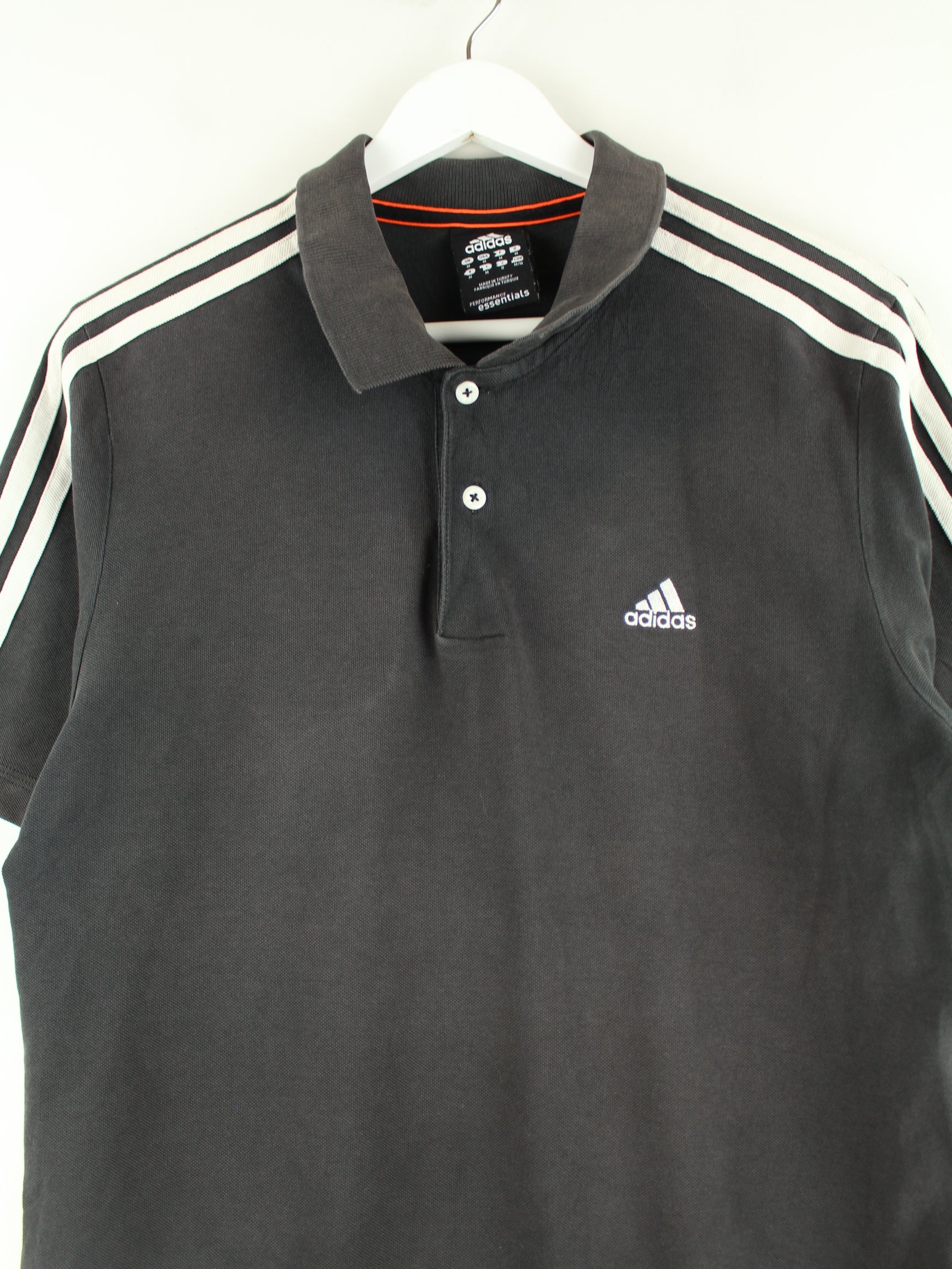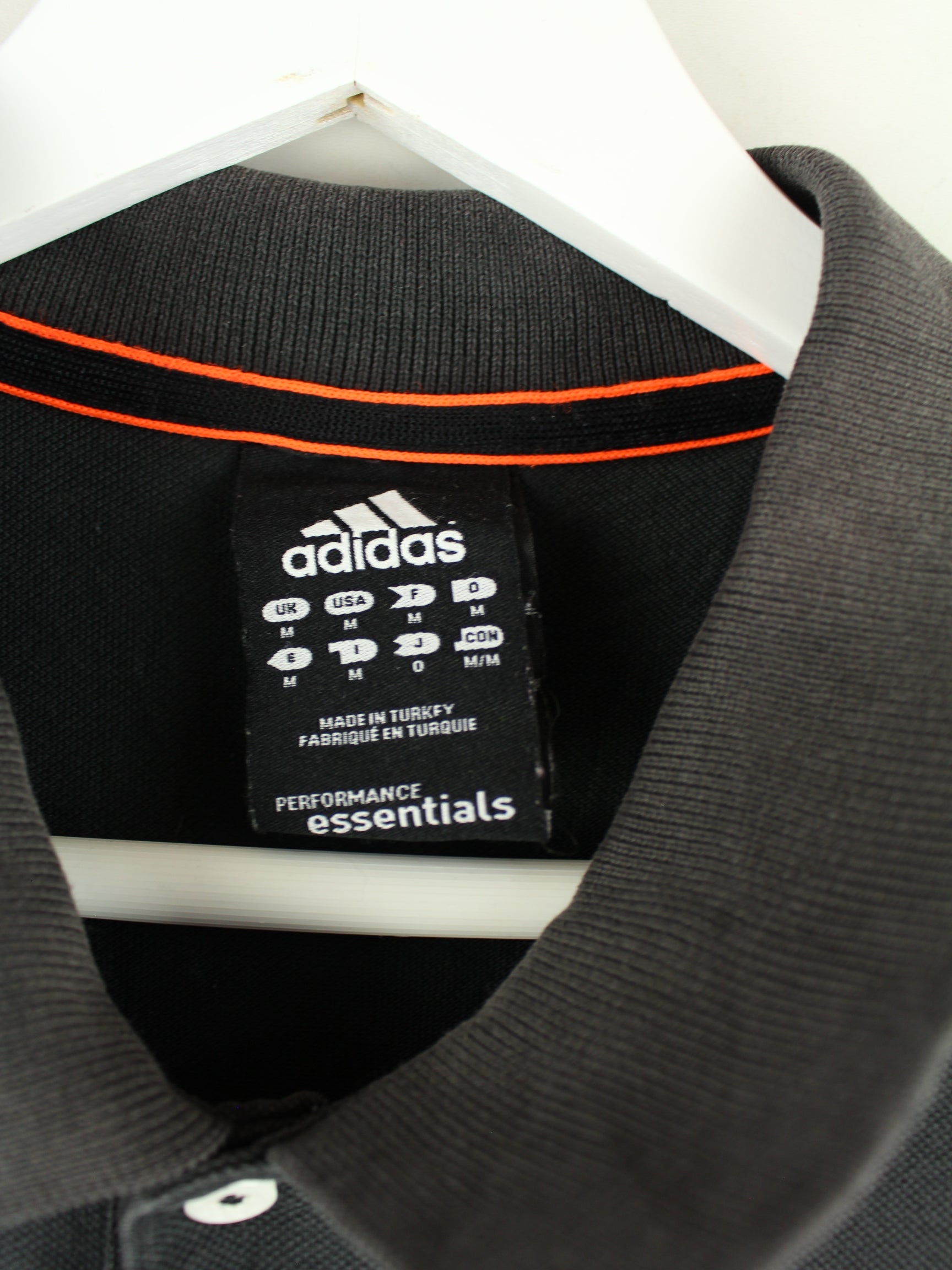 Graues Poloshirt aus dem Hause Adidas aus Anfang der 2000'er in Größe M. Es ist aus Baumwolle angefertigt und in gutem Zustand auf Lager.
