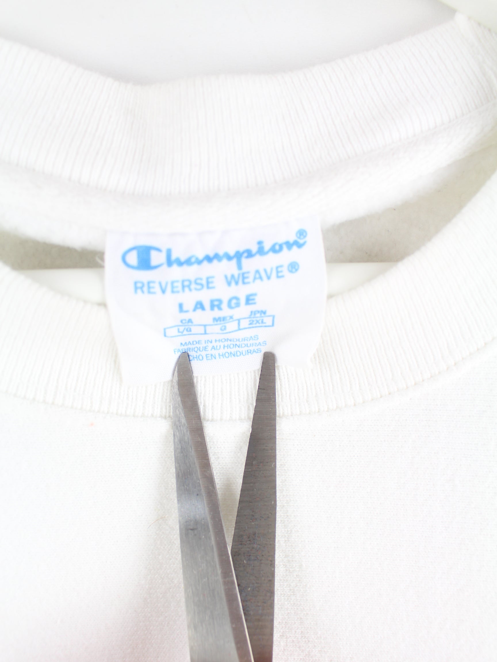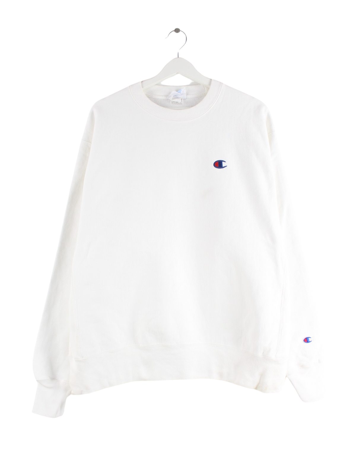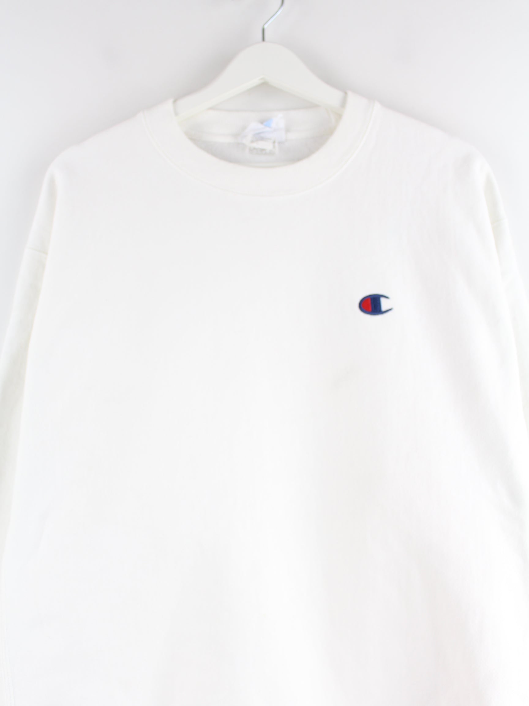 Weißer Sweater der Marke Champion aus Anfang der 2000'er in Größe L. Er ist aus Baumwolle gemacht und in gutem Zustand in Stock.