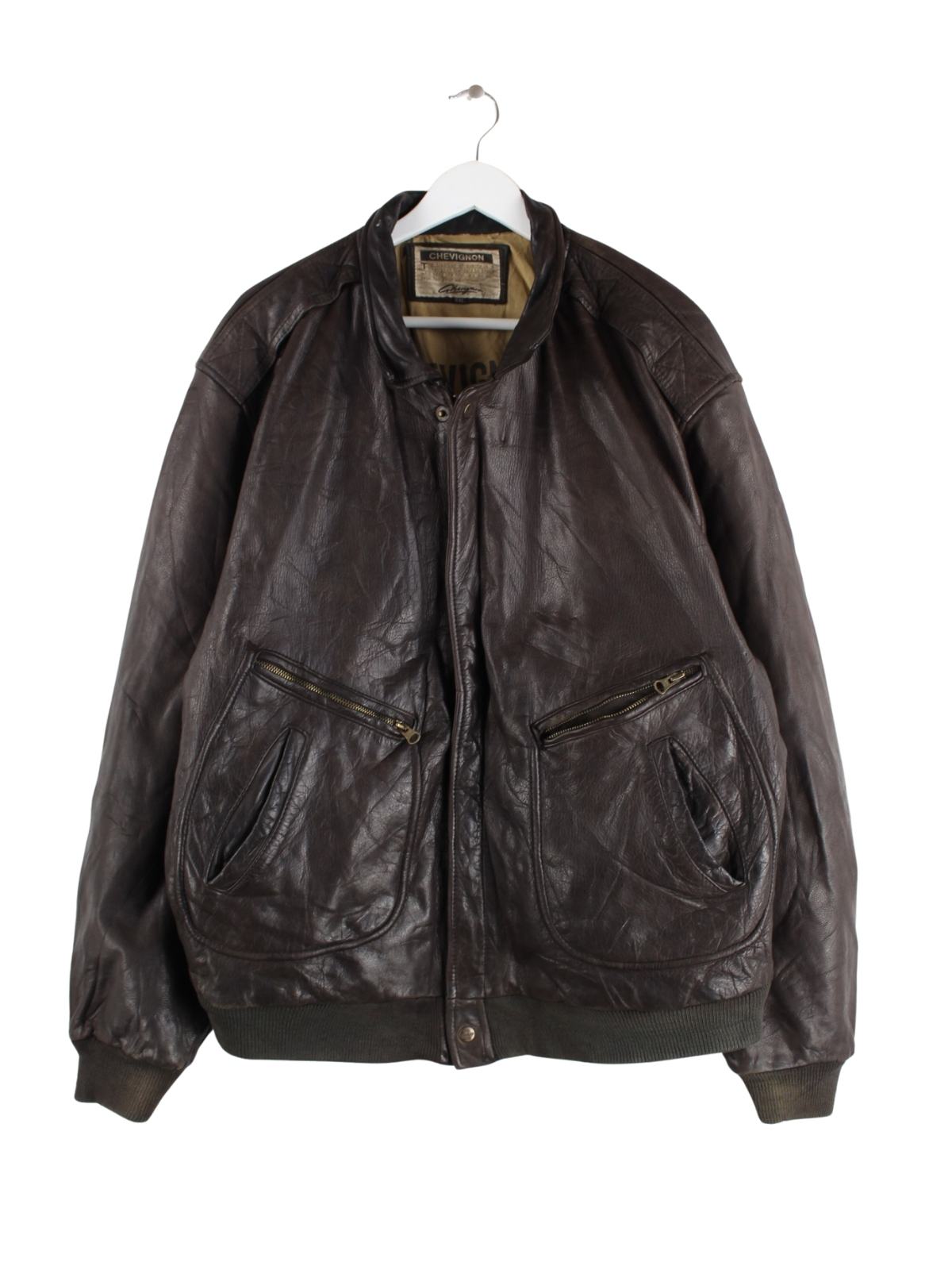 Jacke der Marke Chevignon in Größe XXL aus den 90'ern. Sie ist aus Leder gefertigt und in Braun lieferbar.