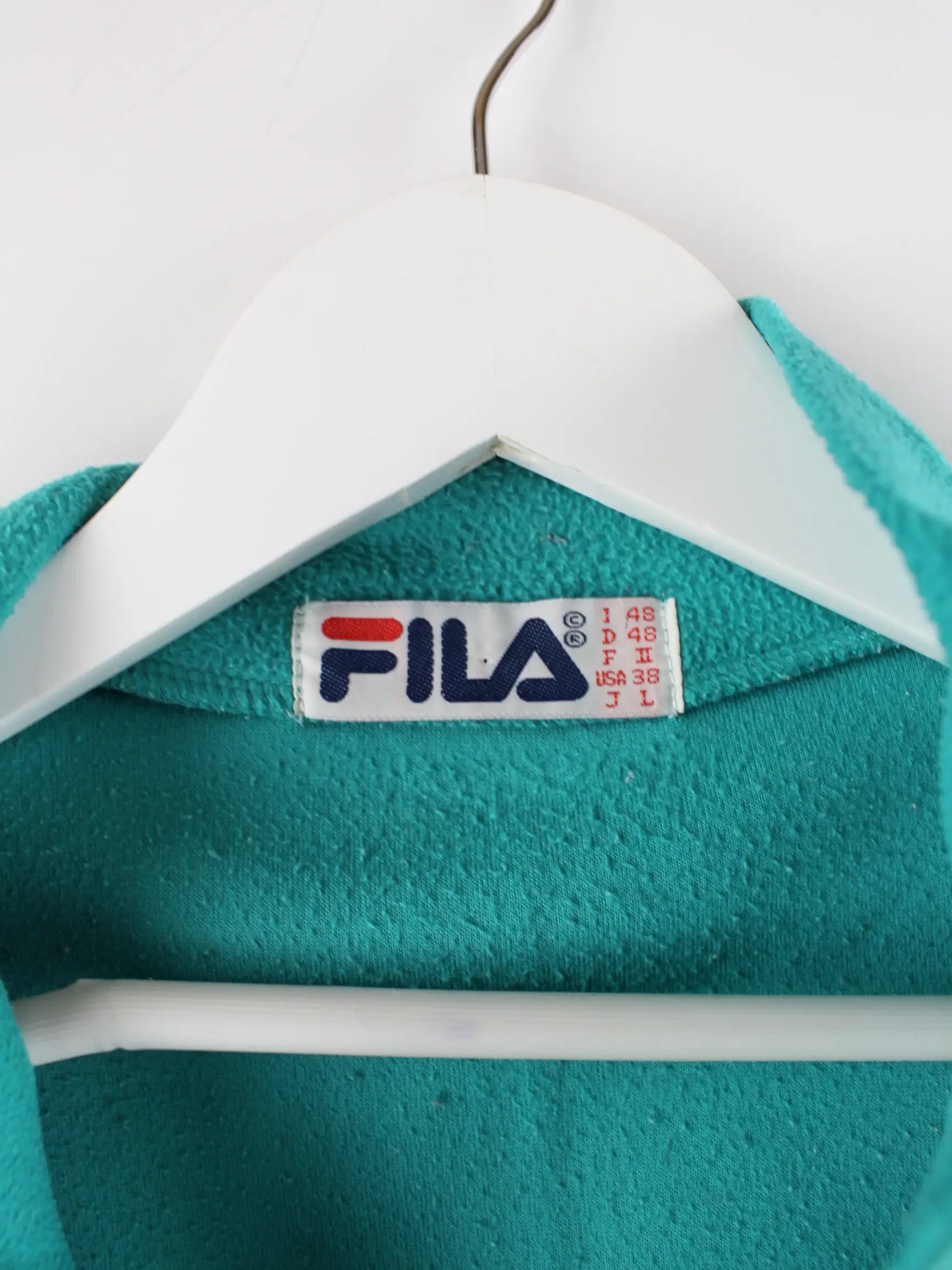 Grüne Leichte Jacke mit half Zip der Marke Fila aus den 90'ern in Größe L. Sie ist aus behaglichem Fleece gemacht und in sehr gutem Zustand lieferbar.