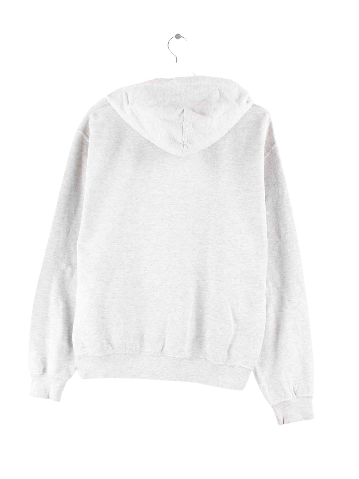 Hoodie vom Brand Gildan mit gesticktem Logo in Größe M aus Anfang der 2000'er. Er ist aus einer Baumwollmischung gefertigt und in Grau vorrätig.