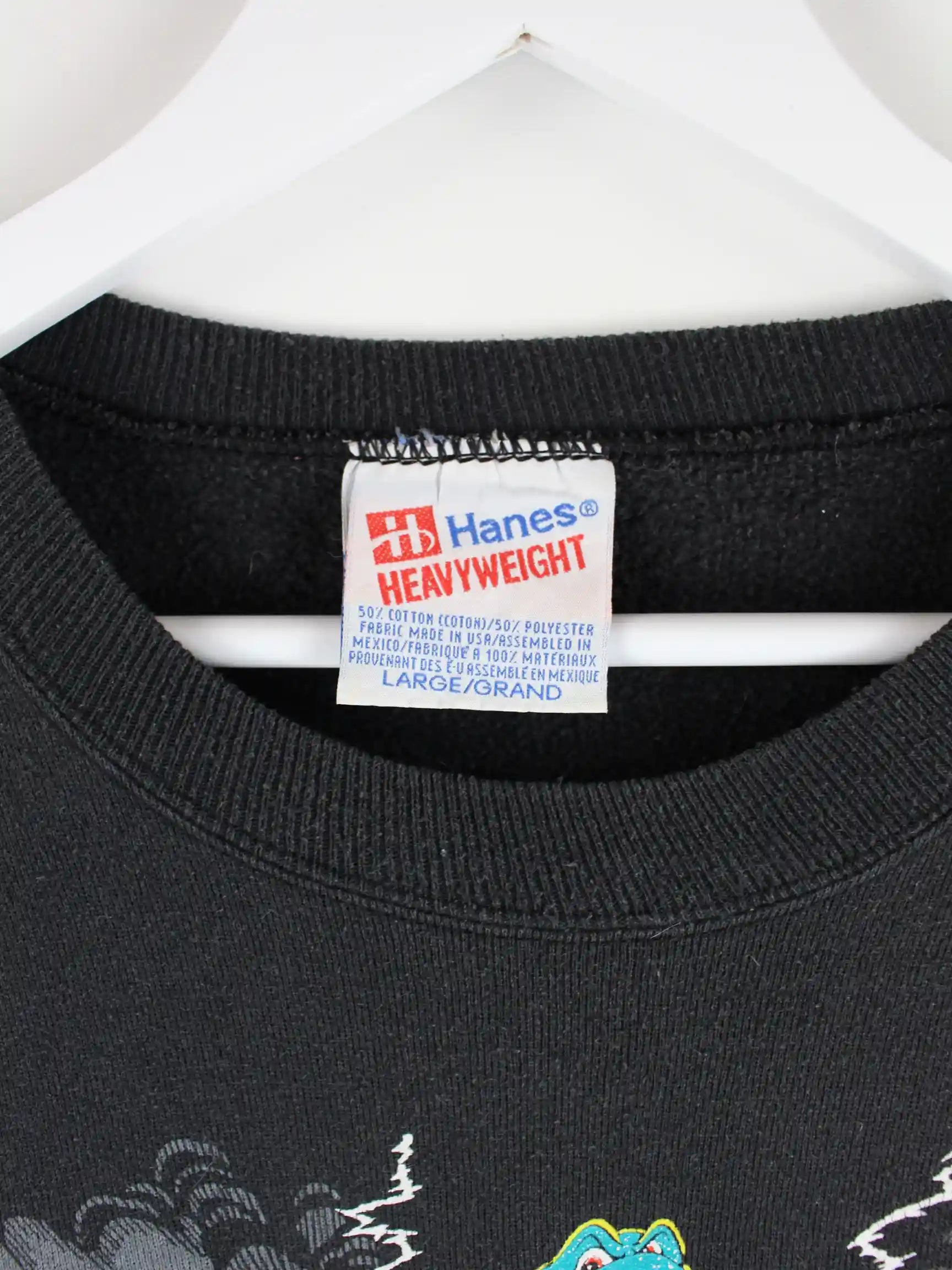 Hanes 90s Vintage Frog Rockstar Print Sweater Schwarz L