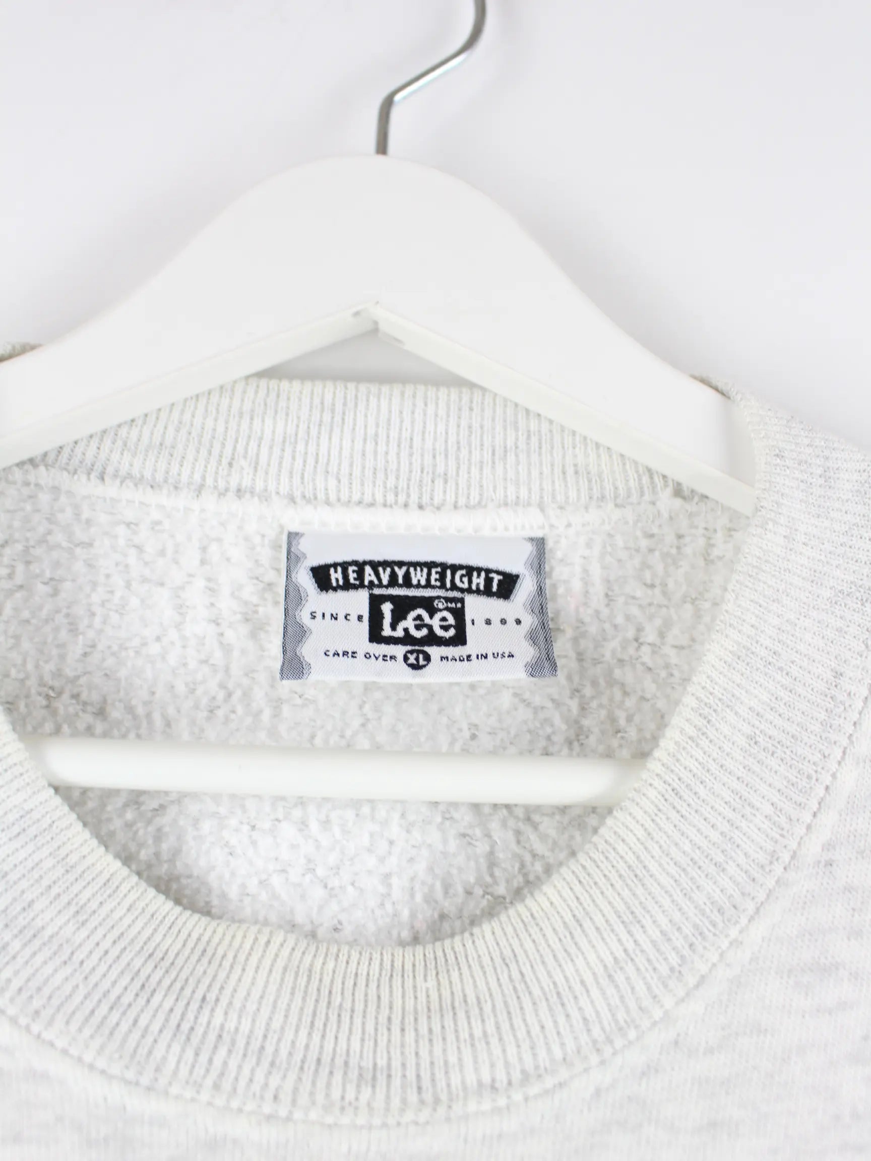 Grauer Sweater der Brand Lee aus den 90'ern in Größe XL. Er ist aus einer Baumwollmischung und in sehr gutem Zustand lieferbar.