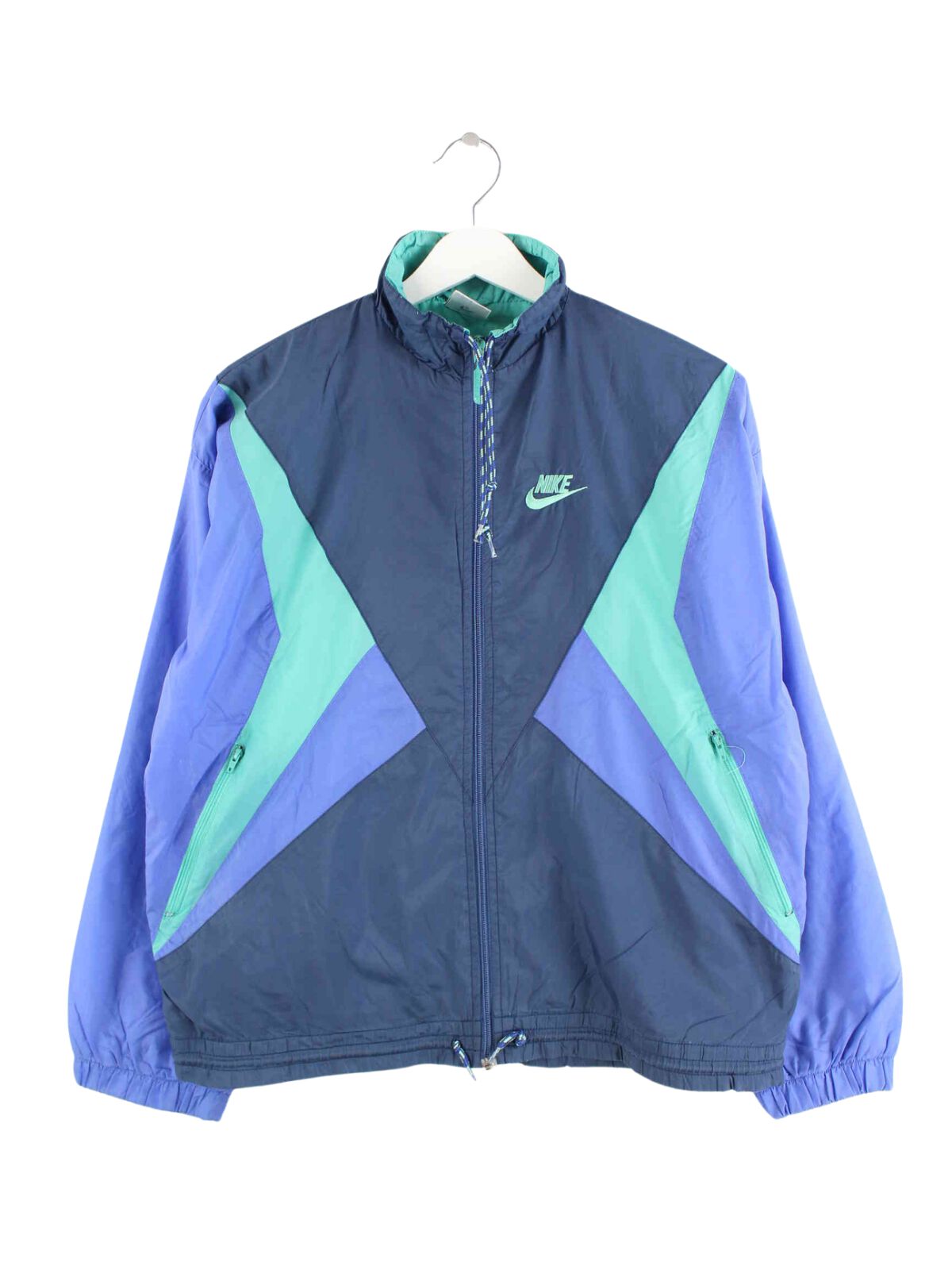 Trainingsjacke vom Label Nike in Größe S aus den 80'ern. Sie ist aus Synthetik gefertigt und in Blau auf Lager.
