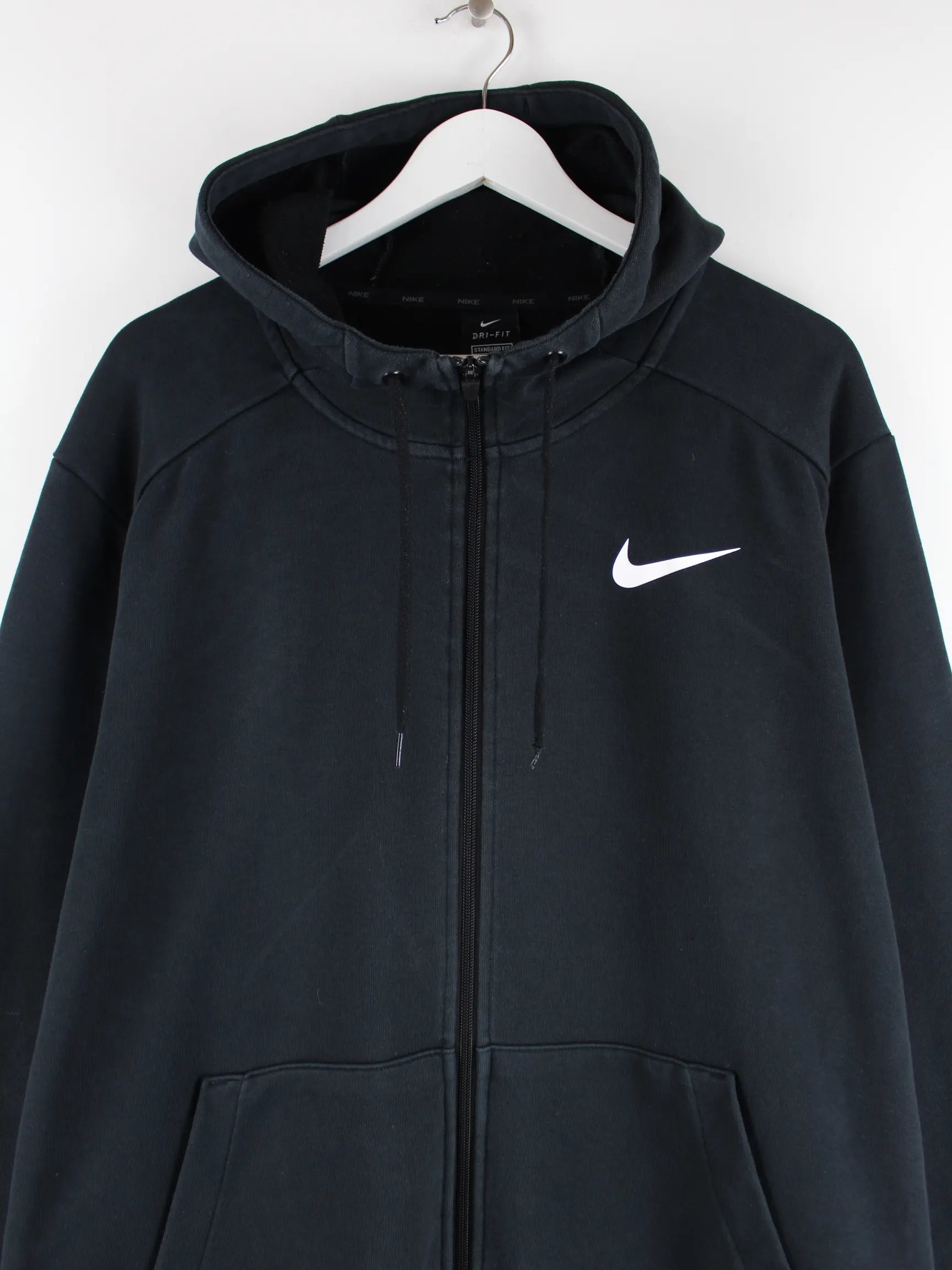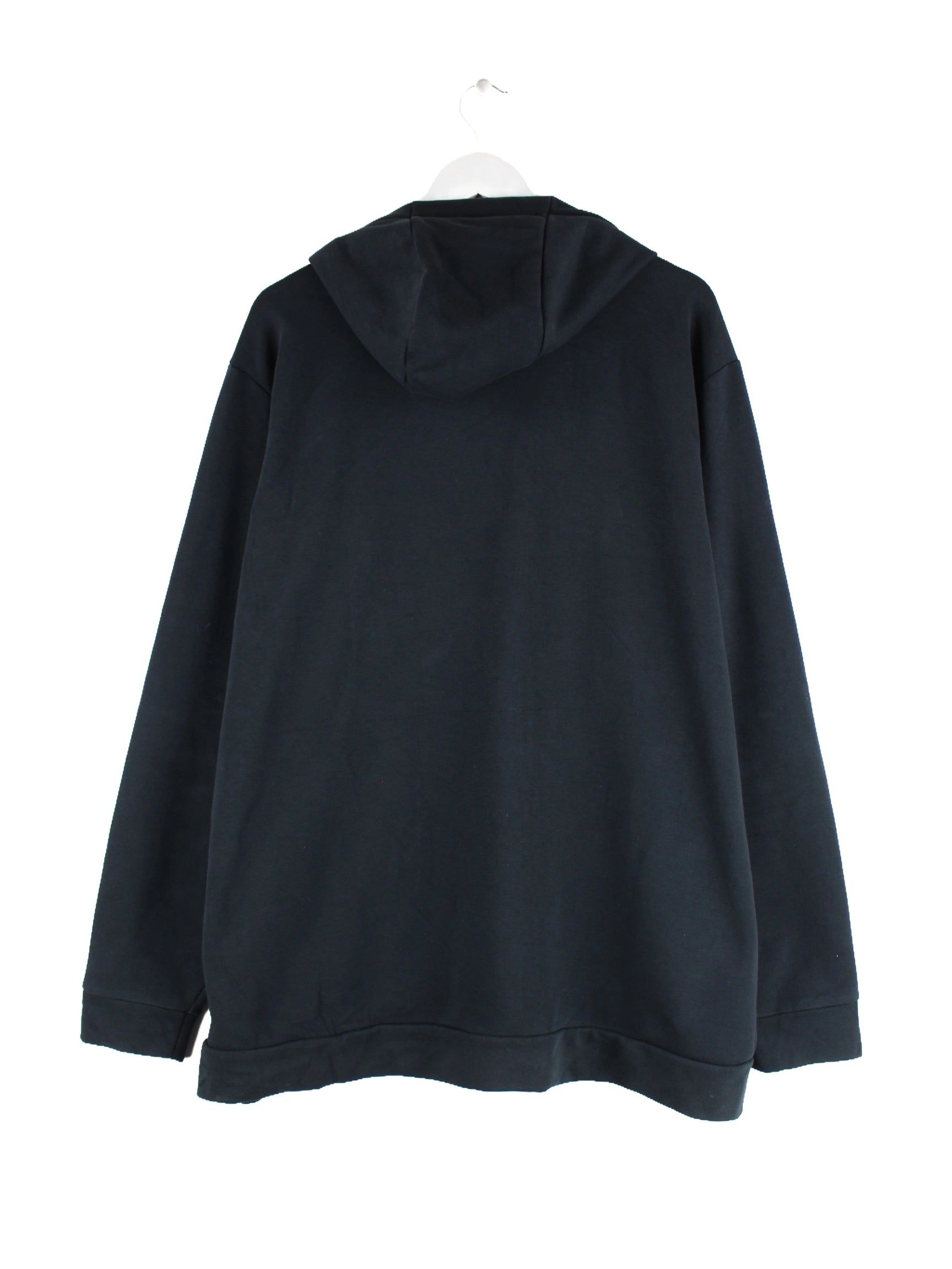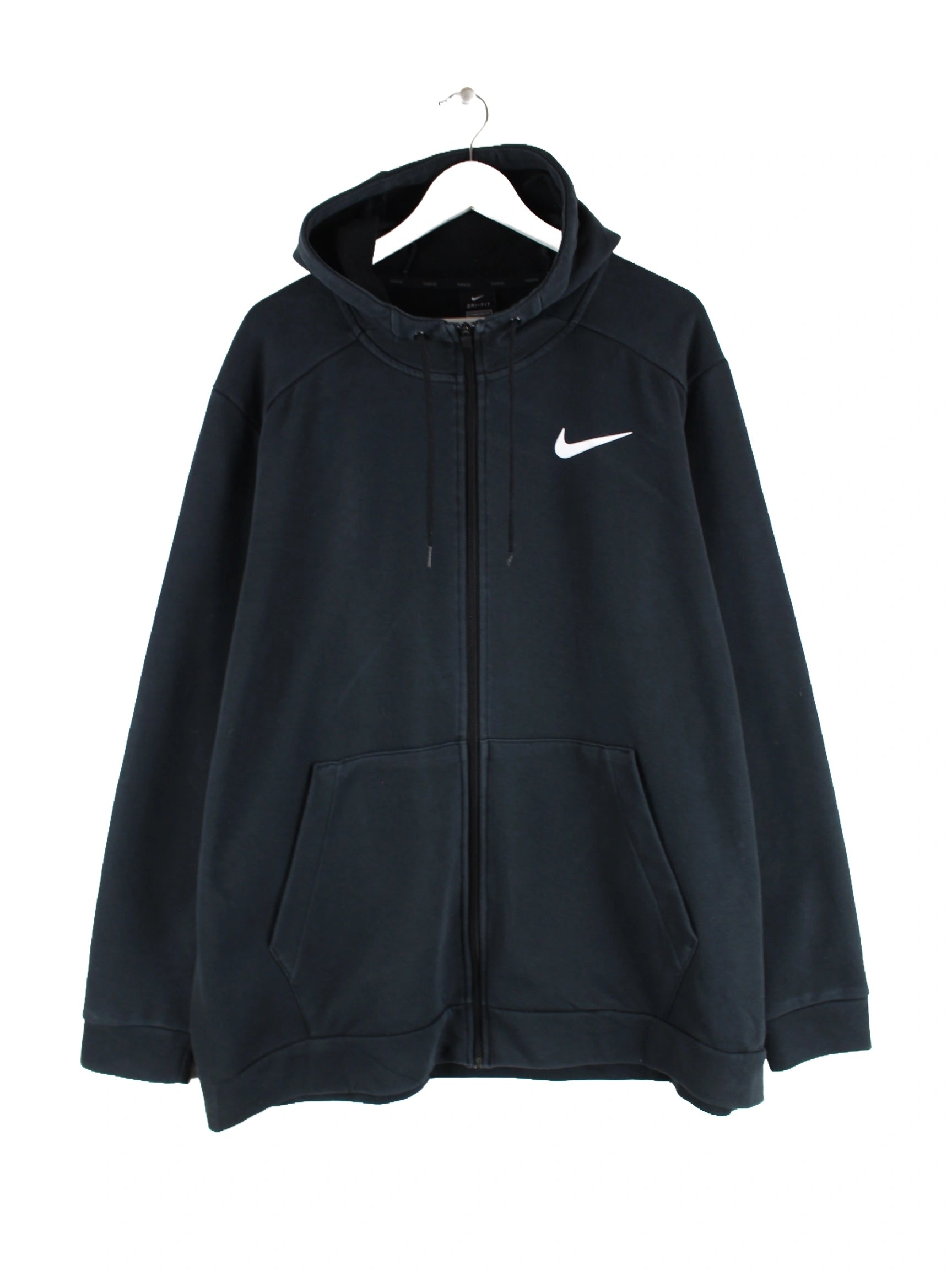 Hoodie vom Label Nike mit durchgehendem Reißverschluß in Größe XXL. Er ist aus einer Baumwollmischung gemacht und in Schwarz vorrätig. Mit seltenem Swoosh Print.