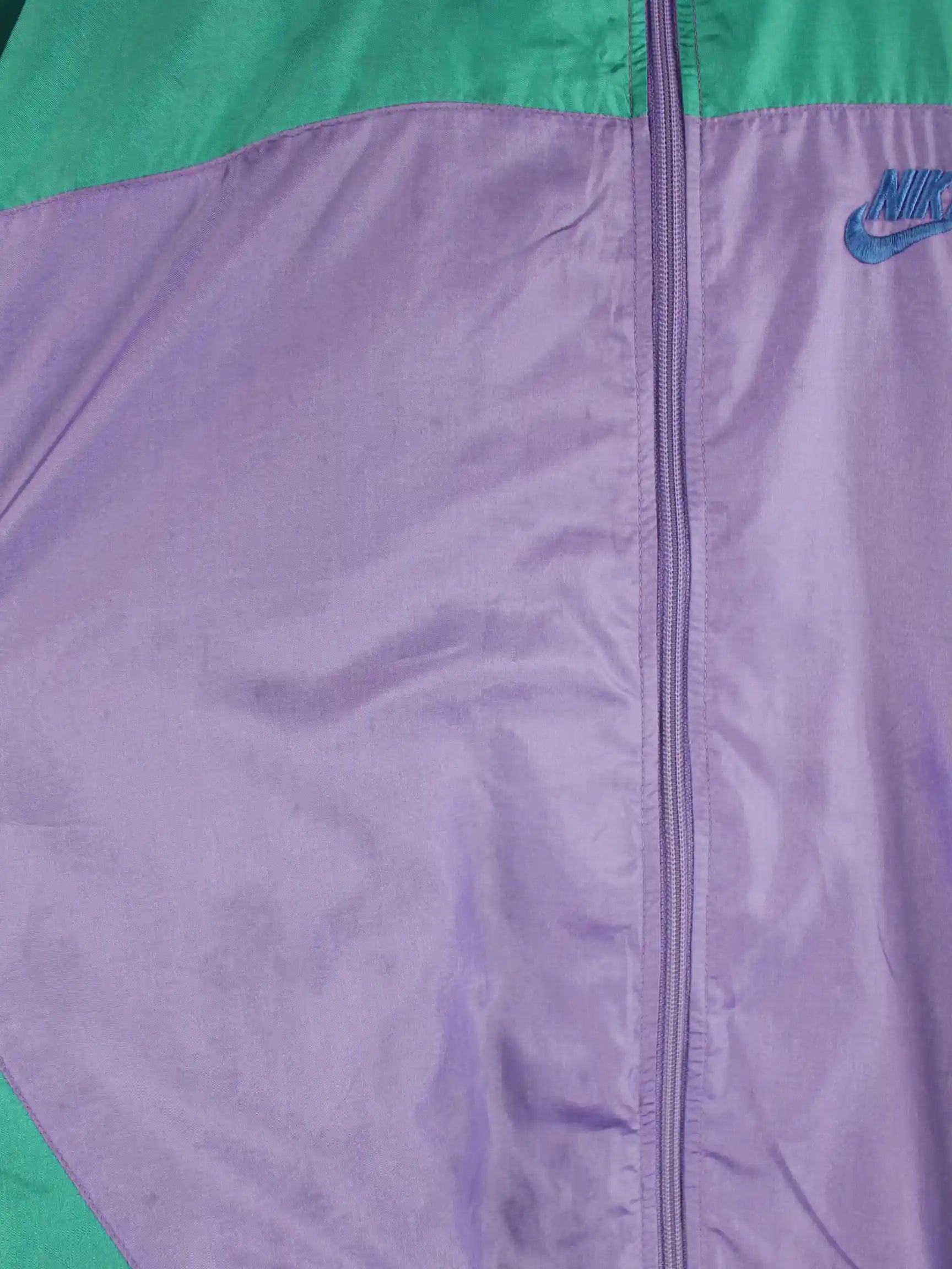 Trainingsjacke vom Brand Nike in Größe L aus den 80'ern. Sie ist aus Synthetik gemacht und in bunten Farben zu haben.