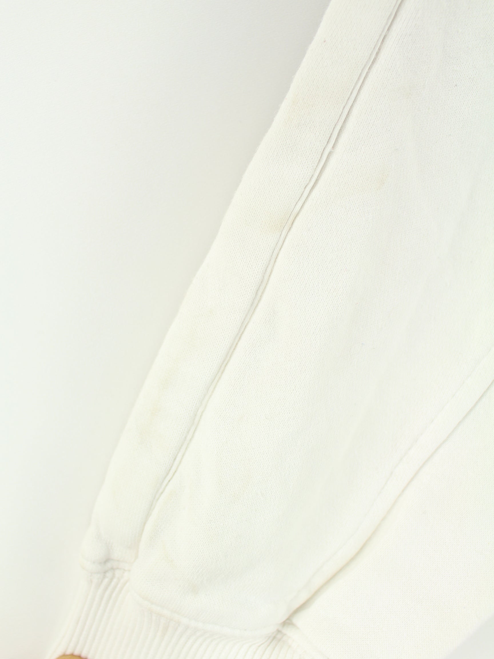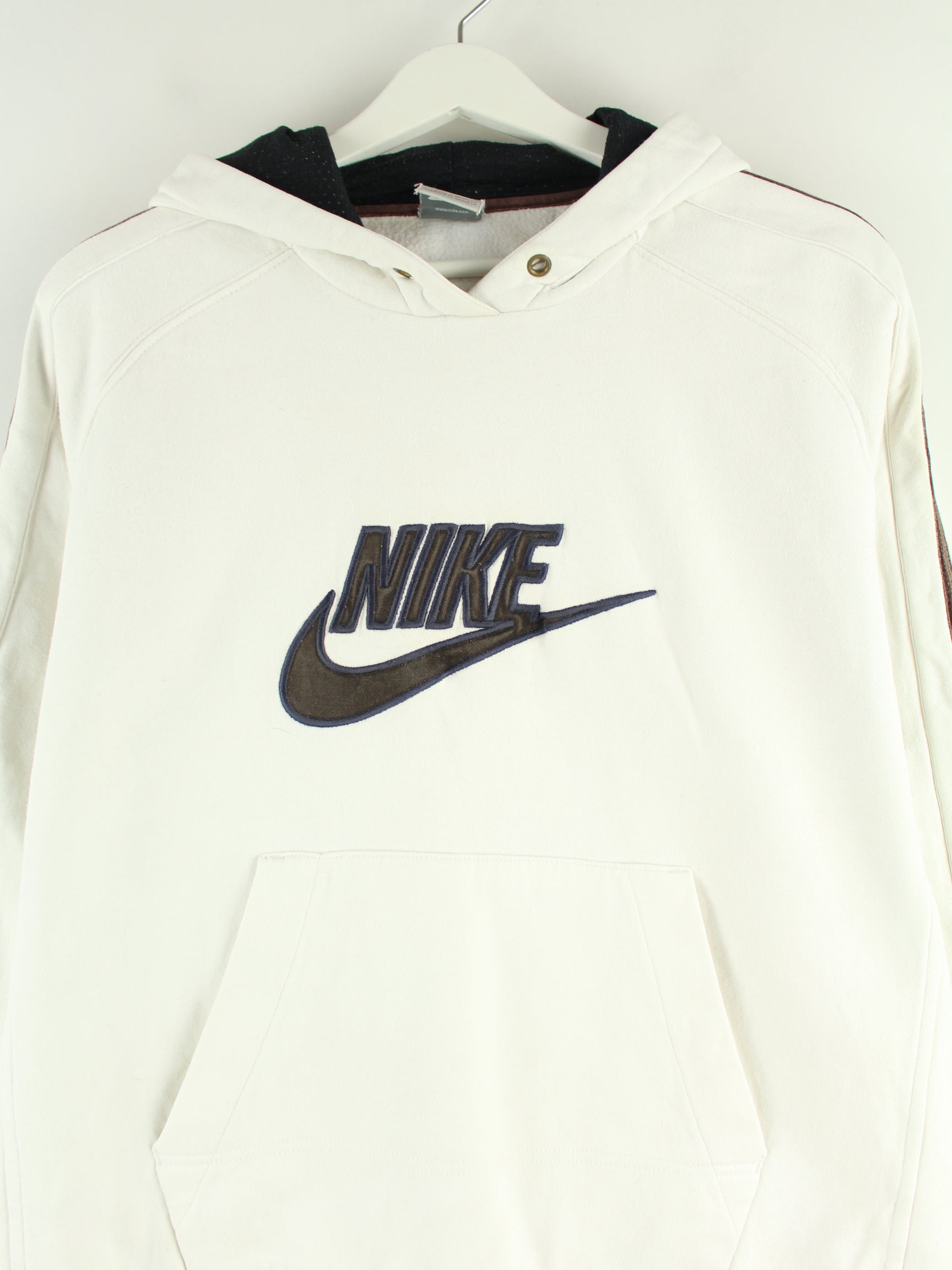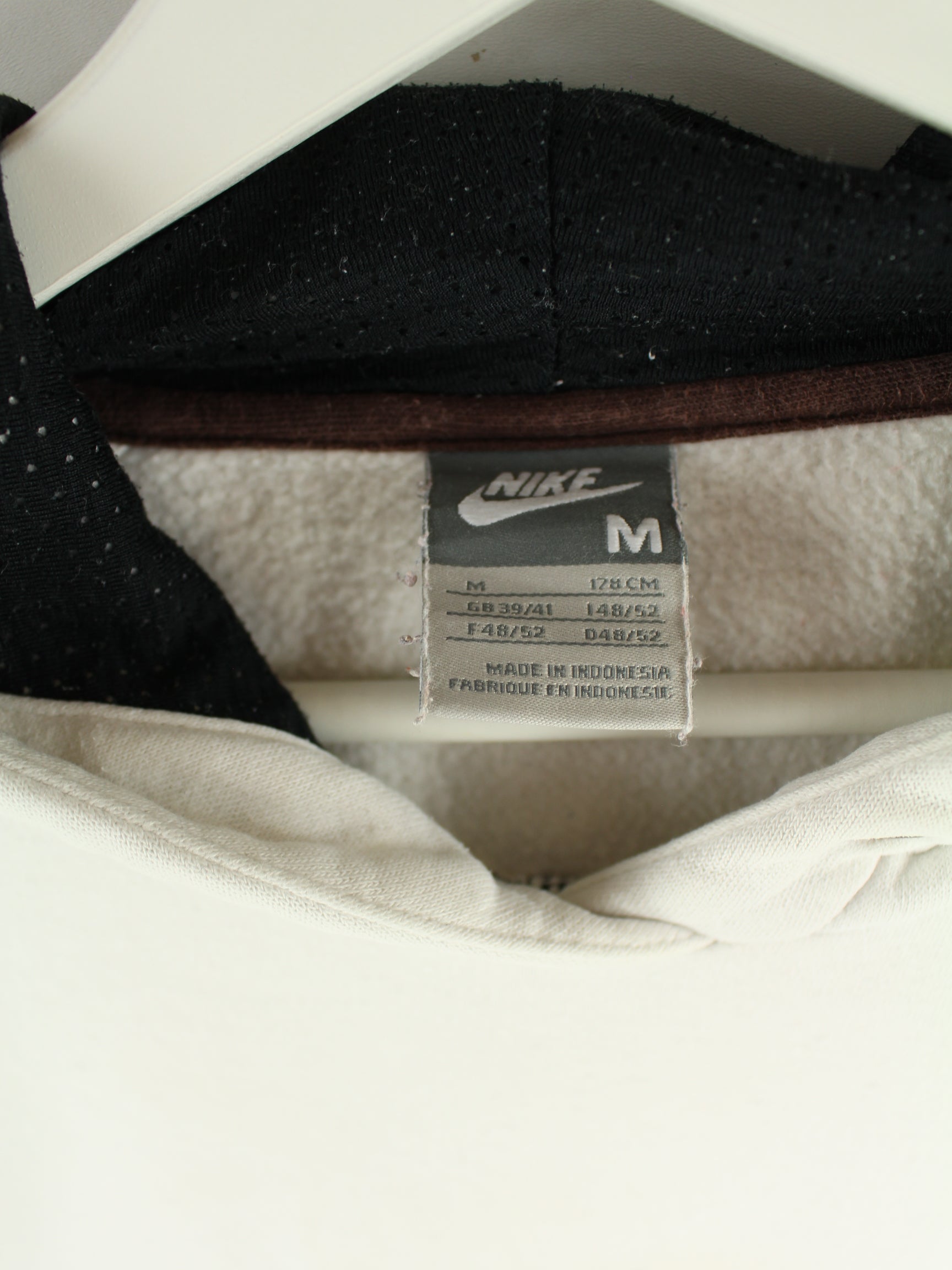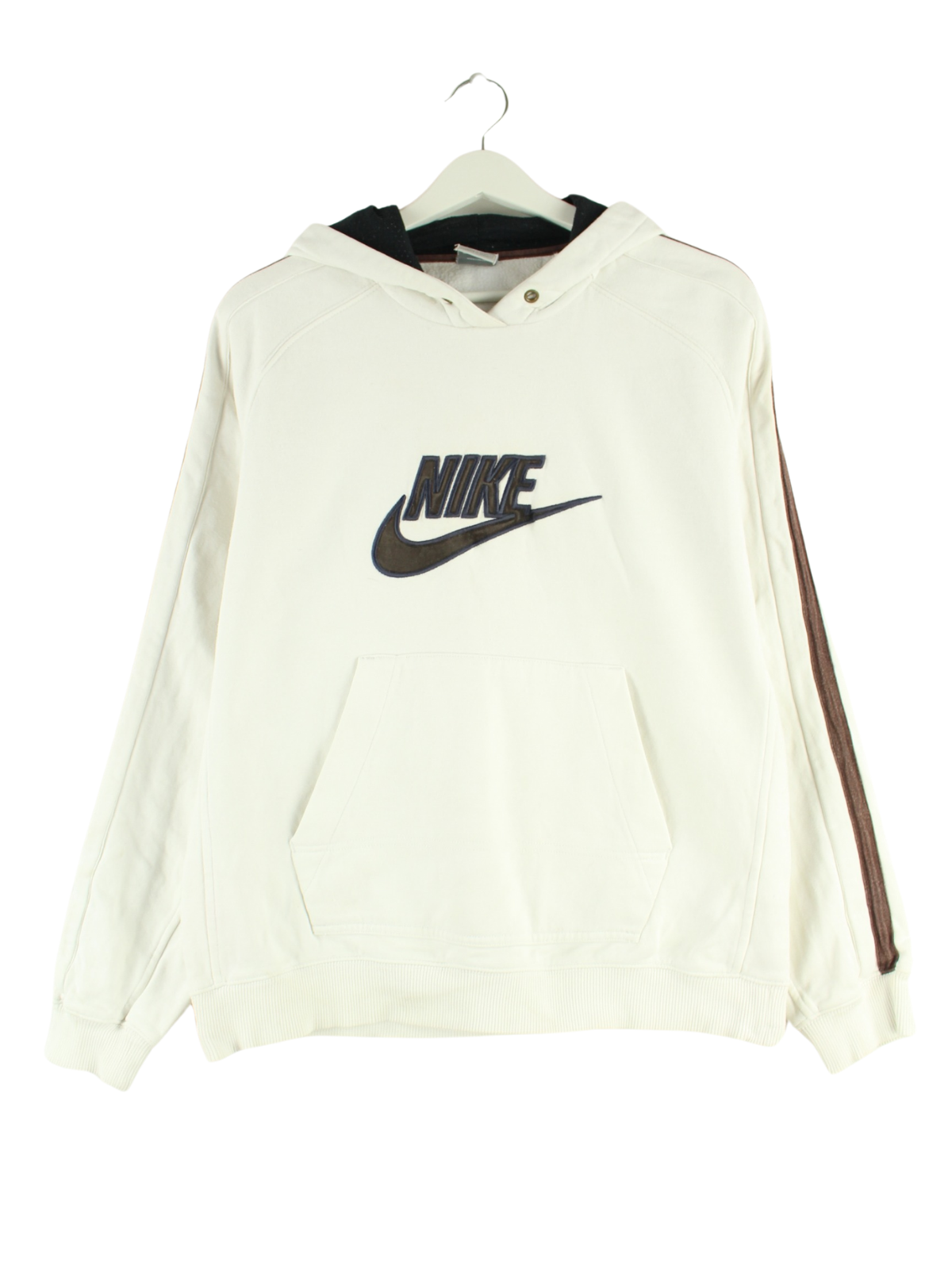 Weißer Hoodie mit Stickereien von Nike aus Anfang der 2000'er in Größe M. Er ist aus einer Baumwollmischung hergestellt und in gutem Zustand bei uns vorrätig.