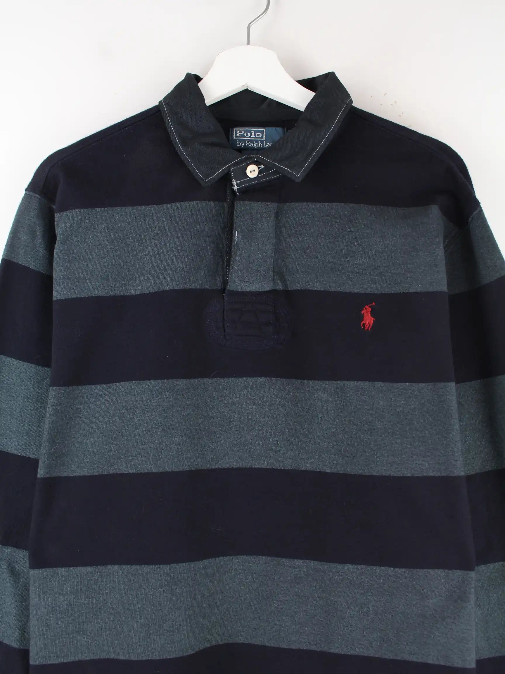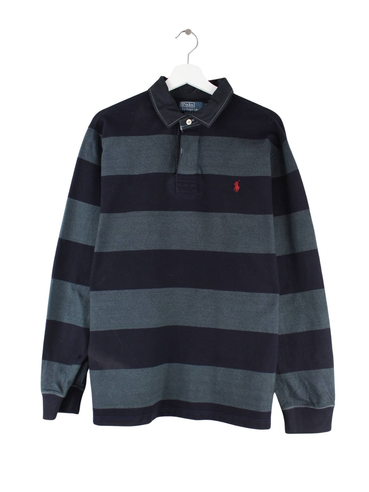 Ralph Lauren 00s Custom Fit Striped Langarm Polo Grau XL