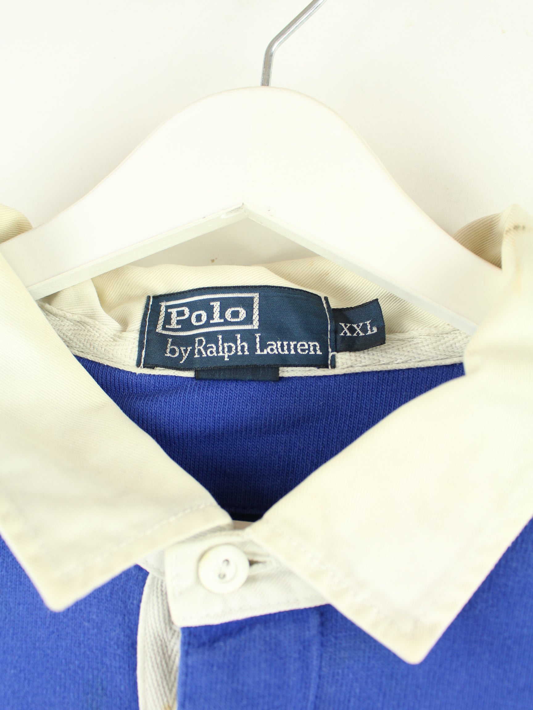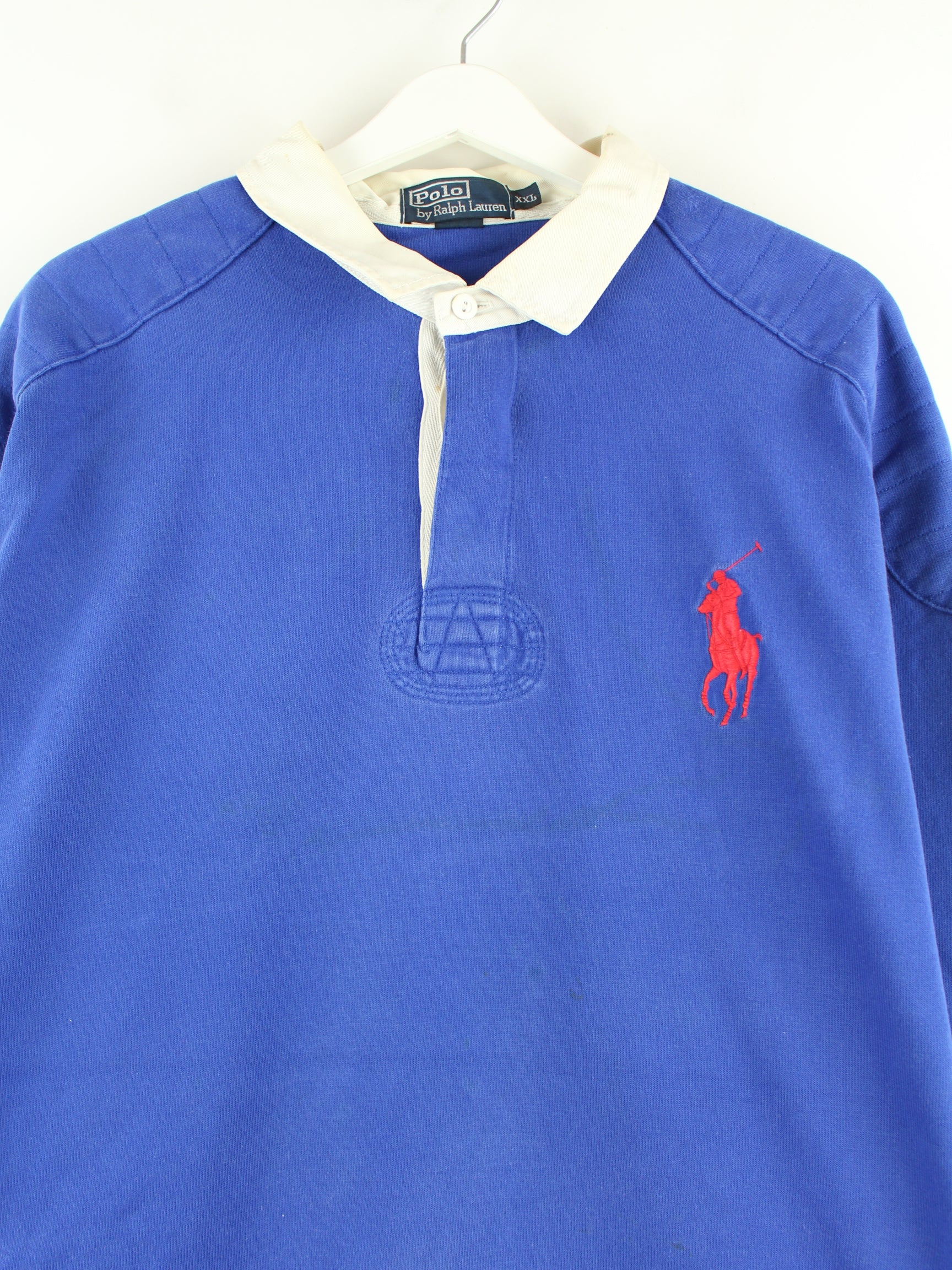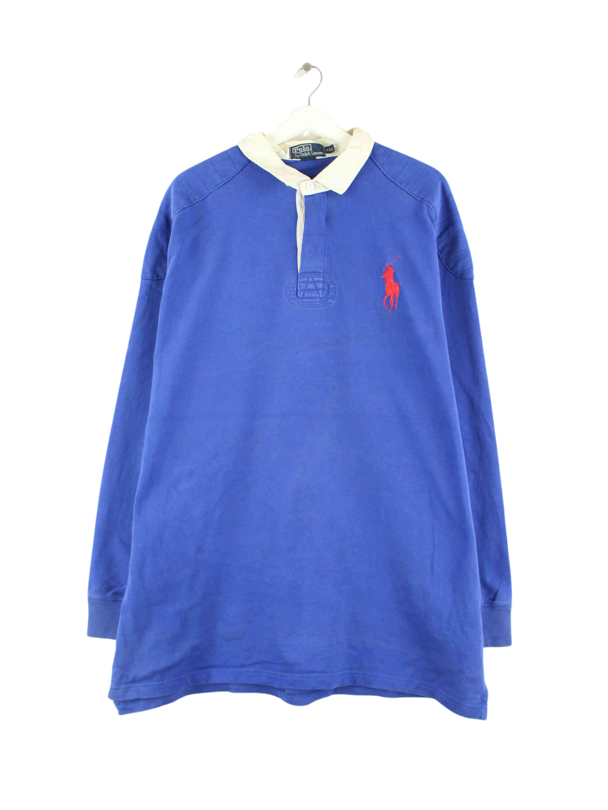 Ralph Lauren 90s Vintage Embroidered Langarm Polo Blau XXL