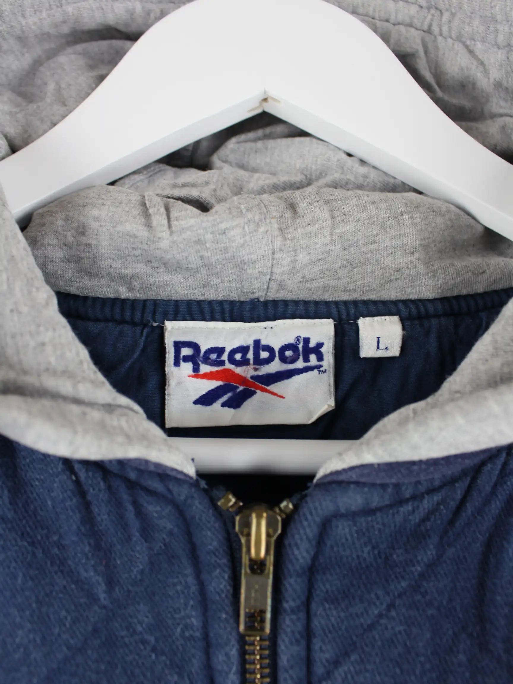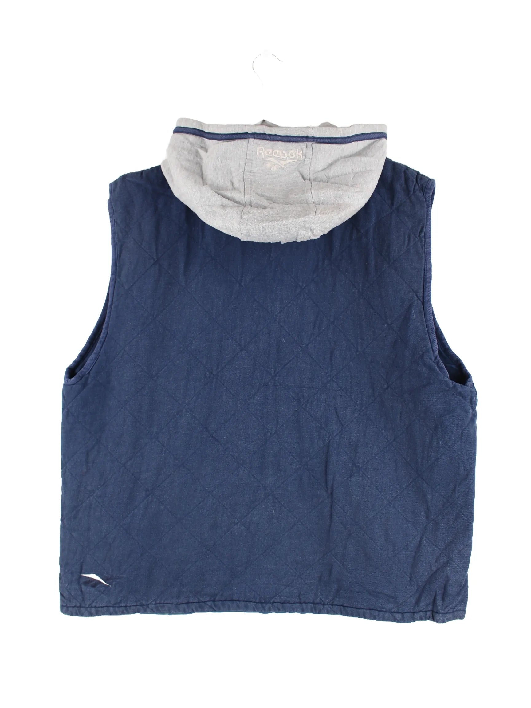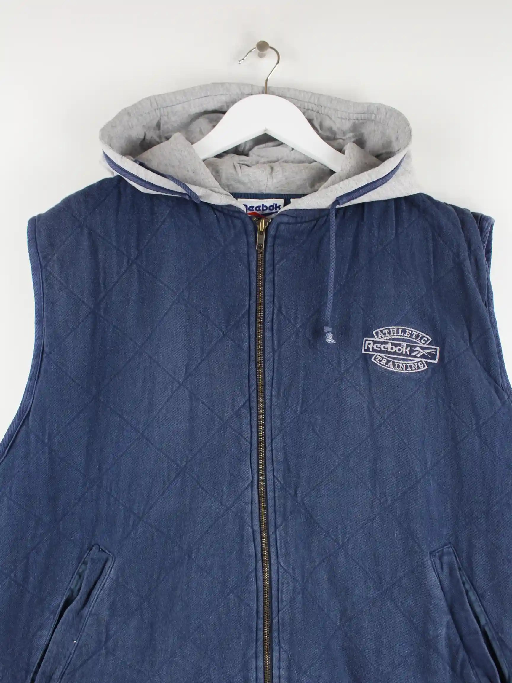 Blaue Weste von Reebok aus den 90'ern in Größe L. Sie ist aus Baumwolle gemacht und in gutem Zustand zu bekommen.
