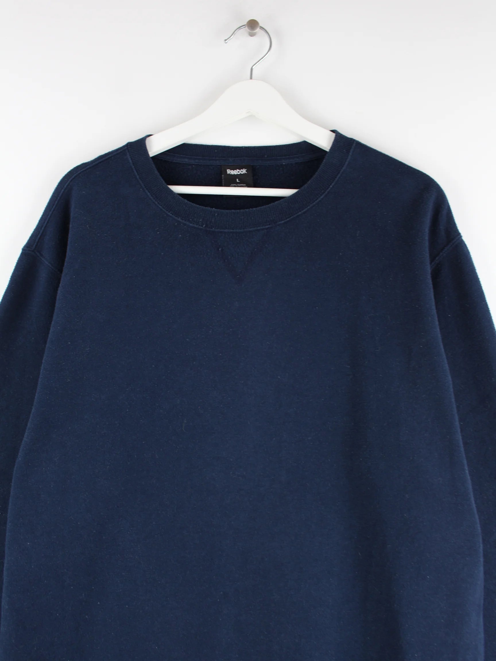 Blauer Sweater von Reebok in Größe L. Er ist aus einer Baumwollmischung und in gutem Zustand im Angebot.