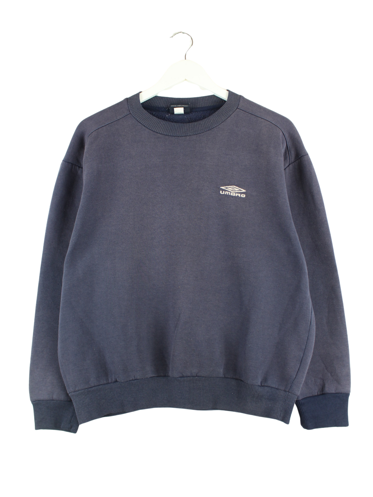 Blaues Sweatshirt mit Stick der Marke Umbro aus Anfang der 2000'er in Größe M. Es ist aus Baumwolle gemacht und in gutem Zustand vorrätig.