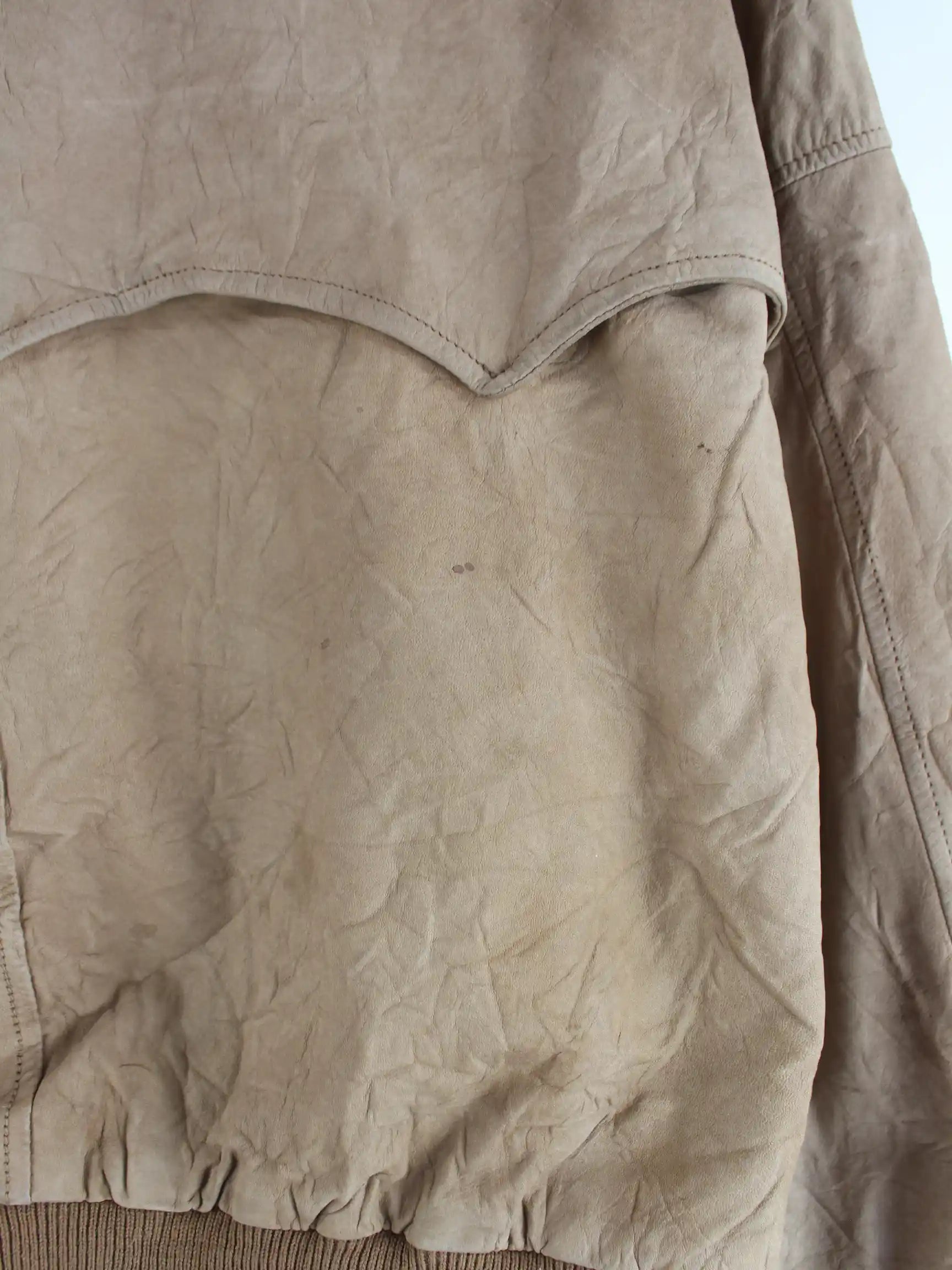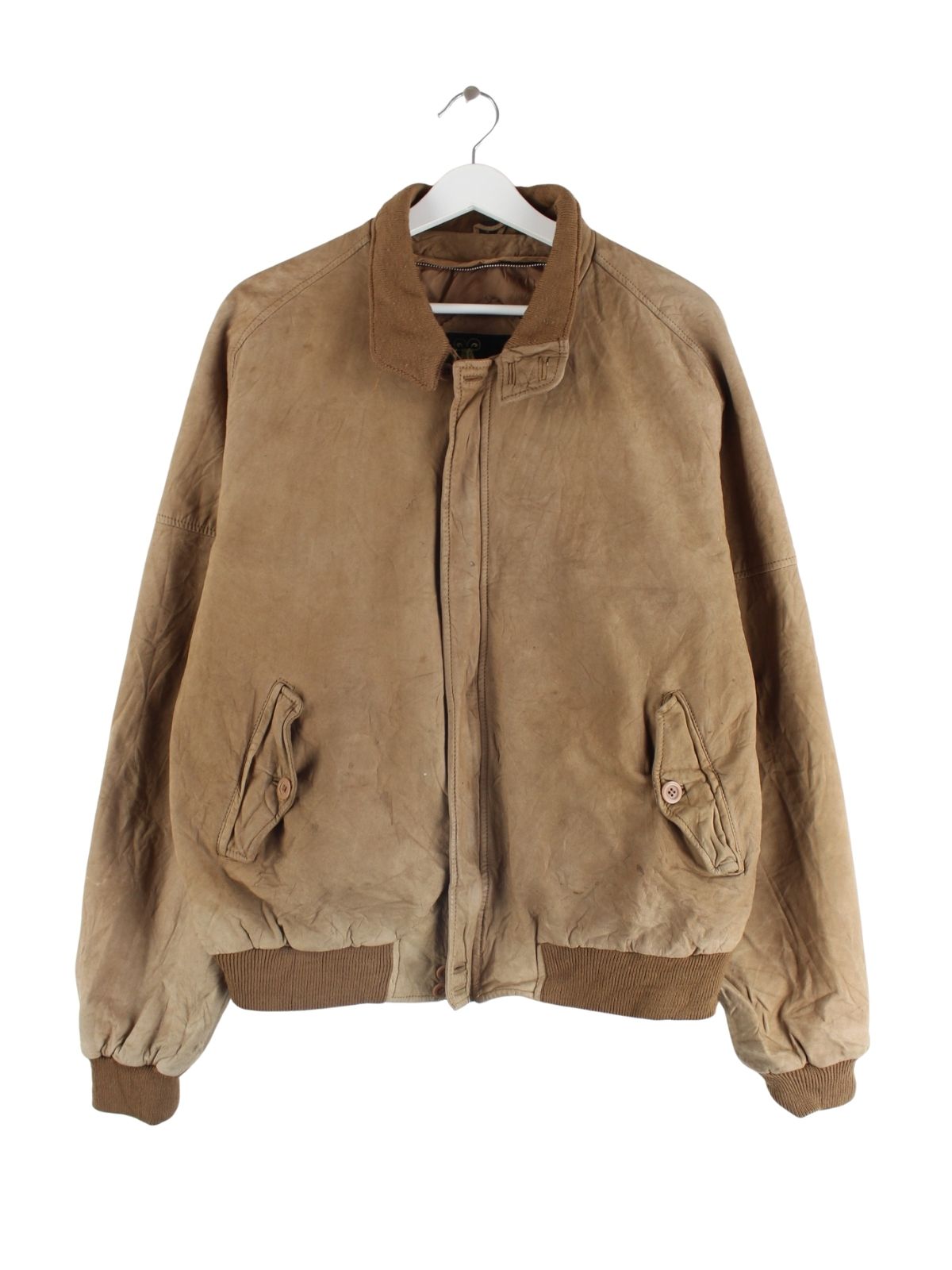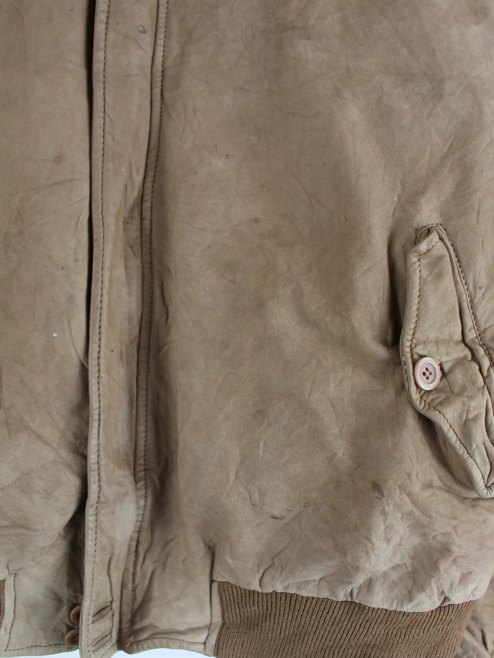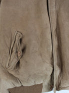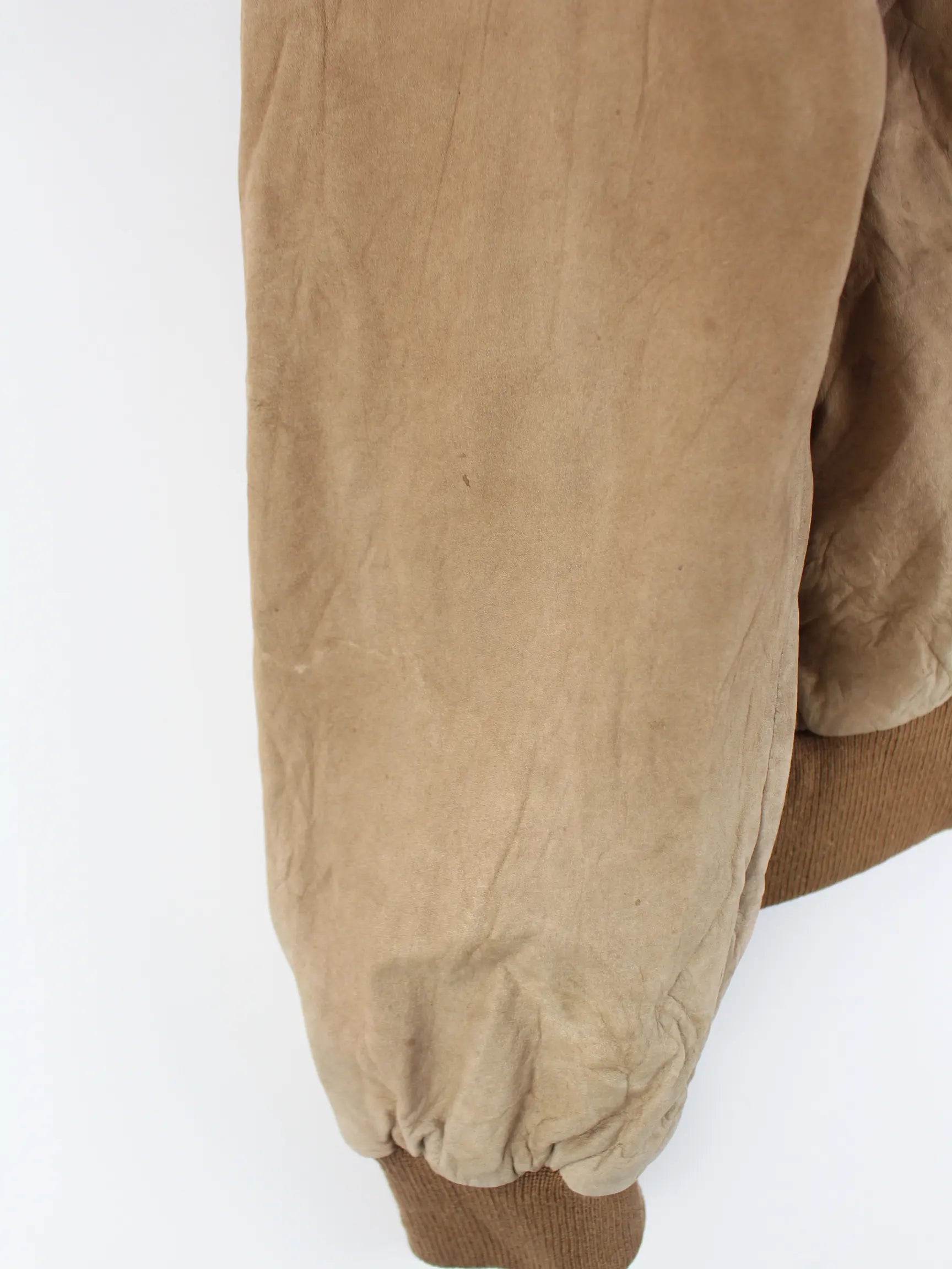 Braune Vintage Suede Bomber Jacke in Größe M. Sie ist aus Leder gefertigt. Den Zustand würden wir als 'In Ordnung' bezeichnen (vergl. Bilder).