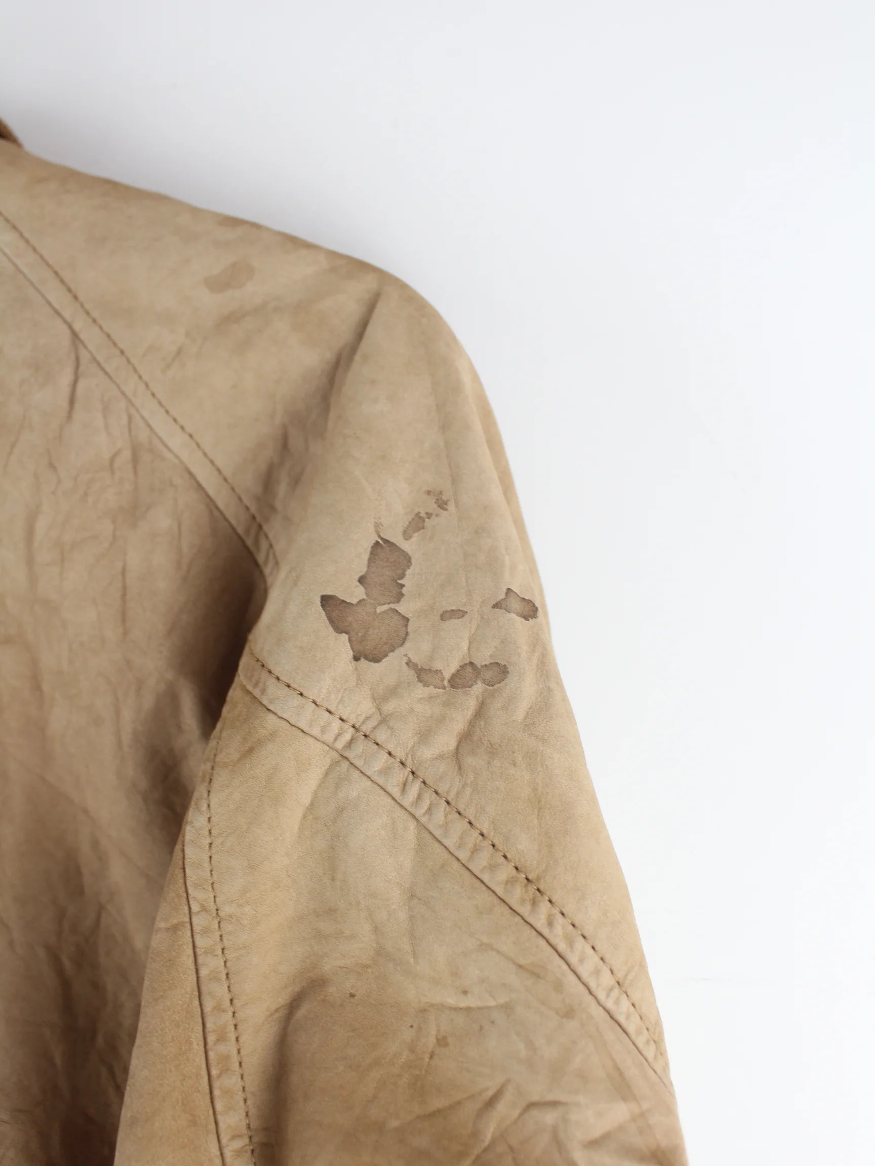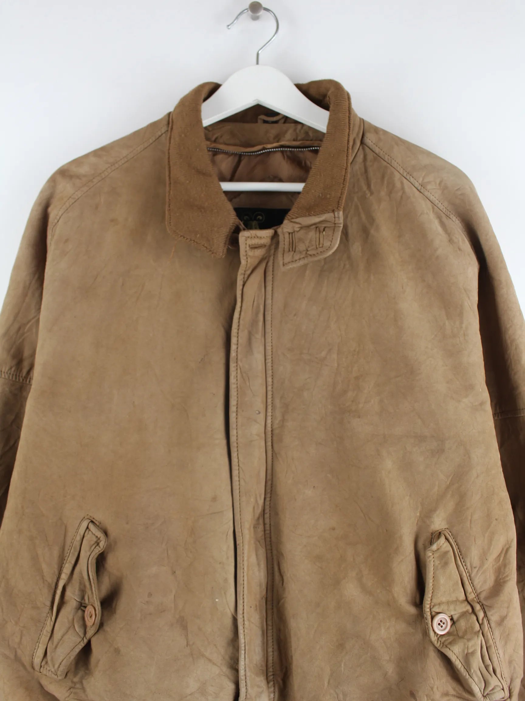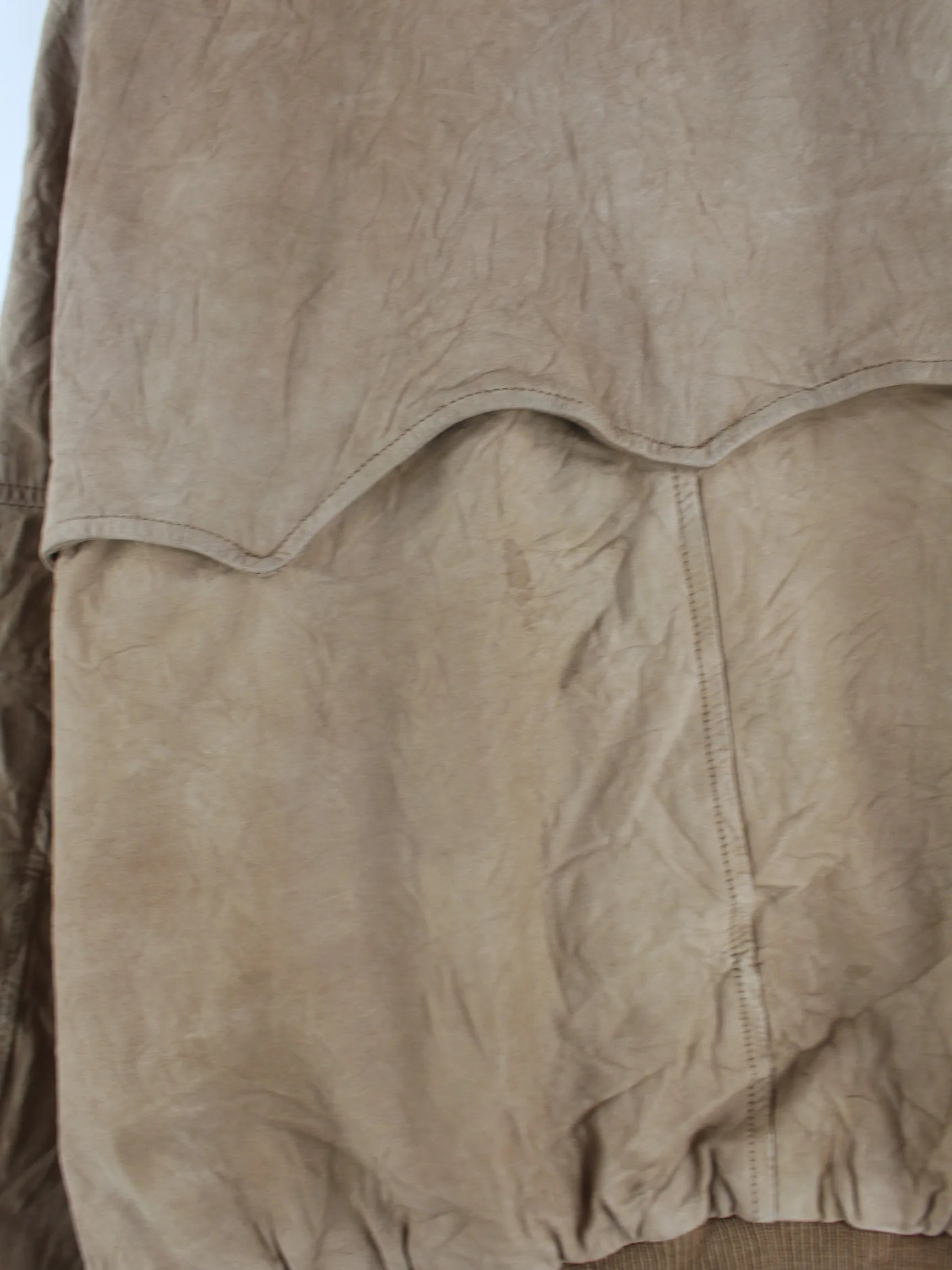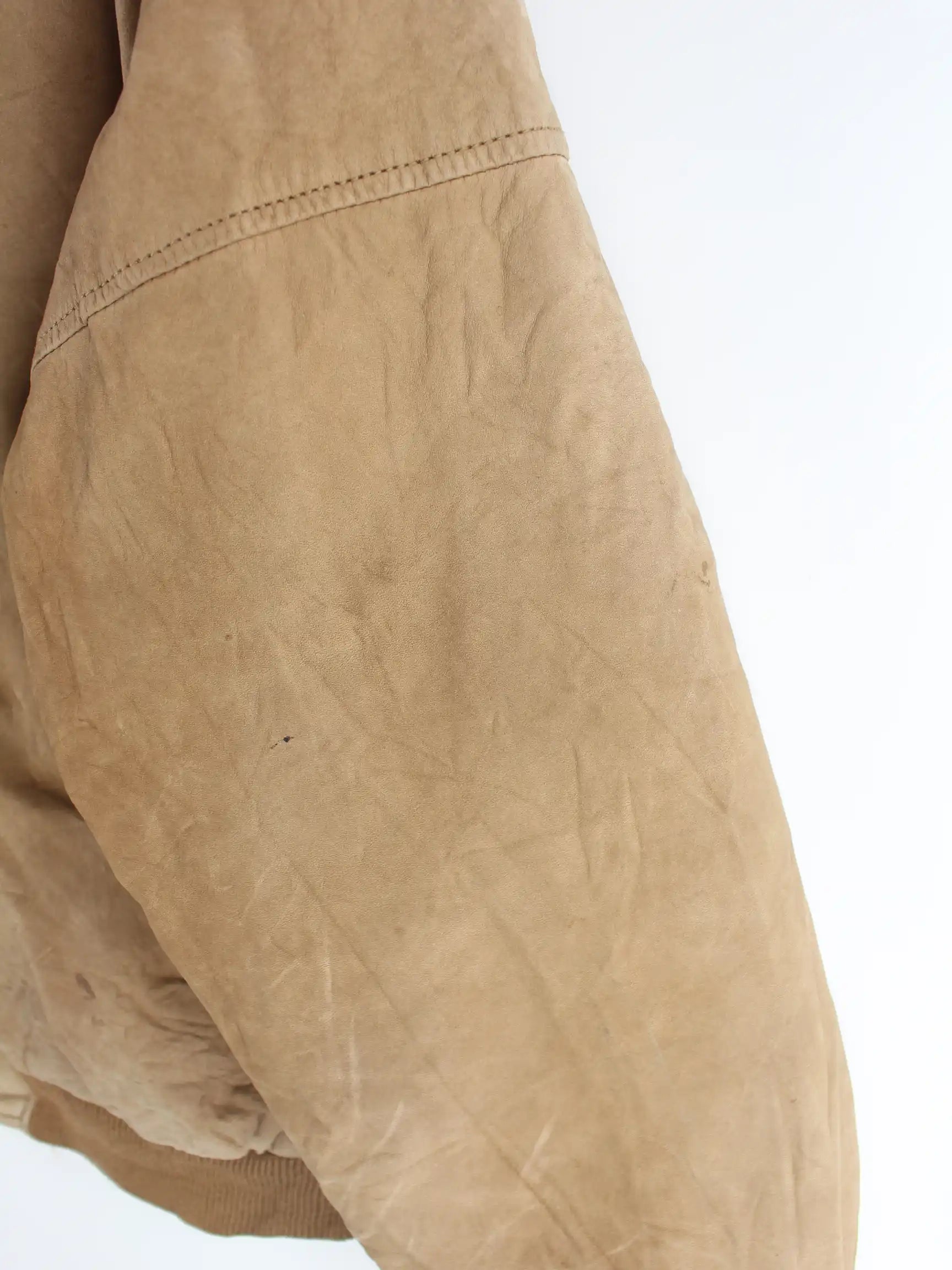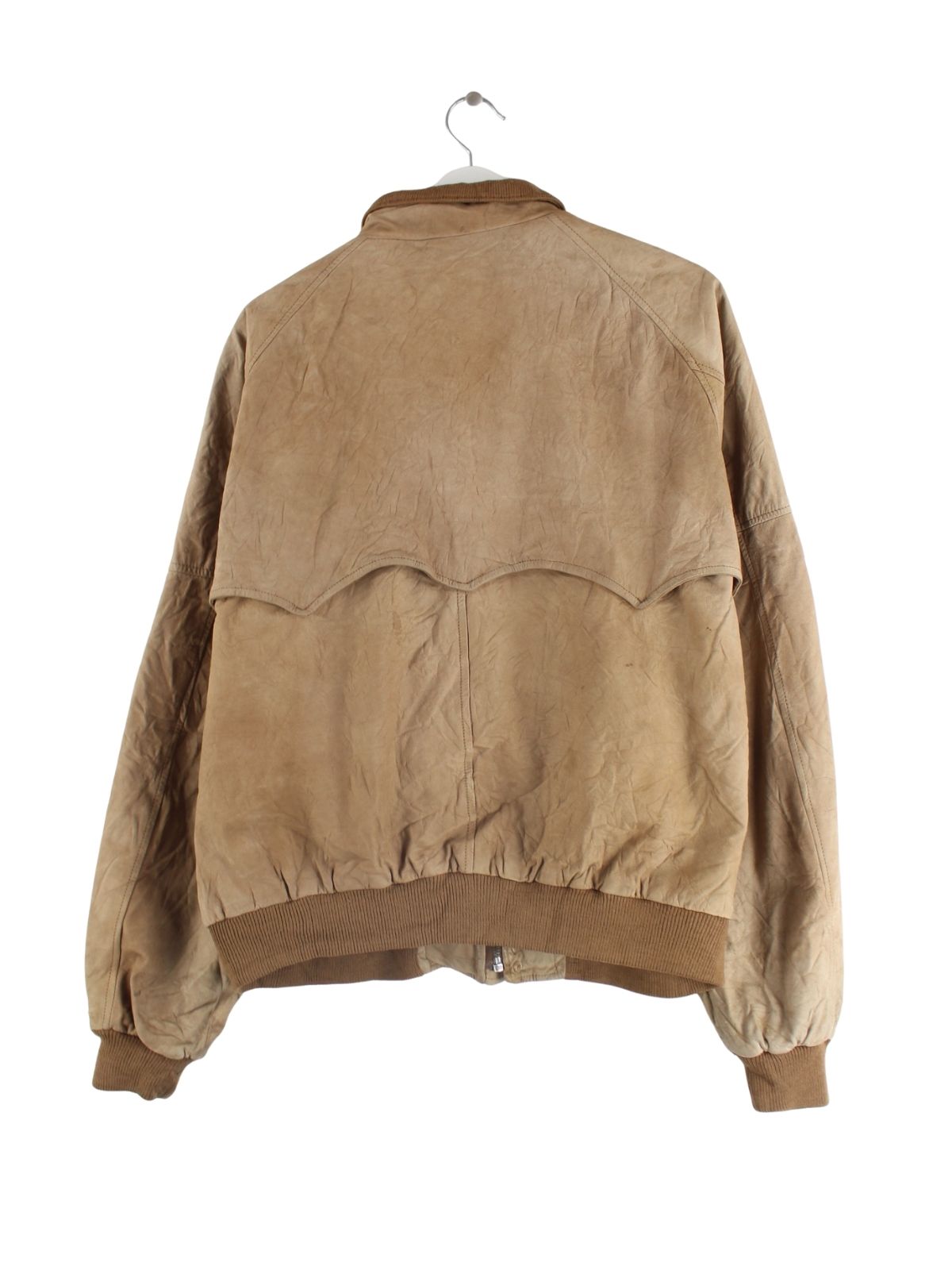 Braune Vintage Suede Bomber Jacke in Größe M. Sie ist aus Leder gefertigt. Den Zustand würden wir als 'In Ordnung' bezeichnen (vergl. Bilder).
