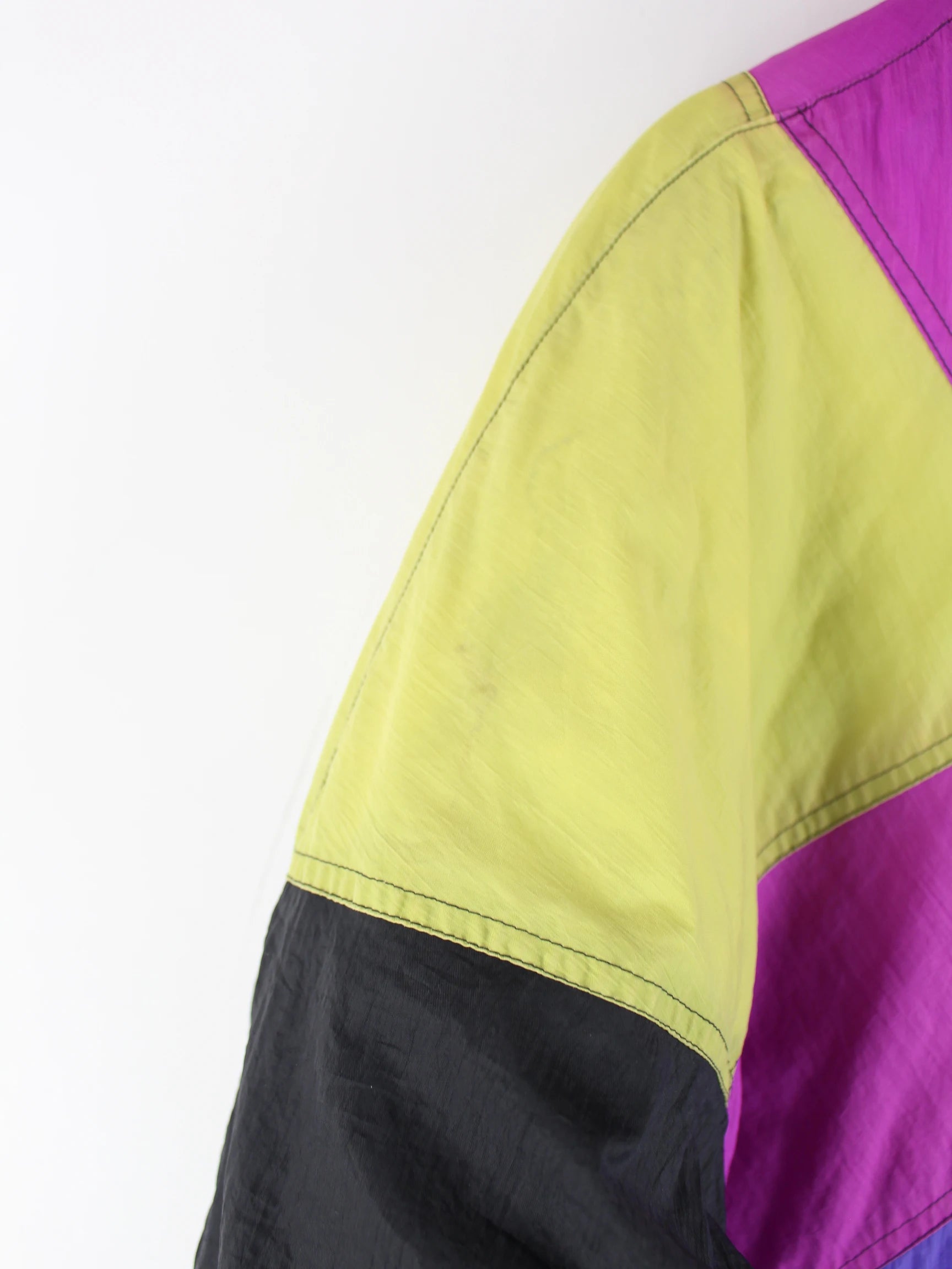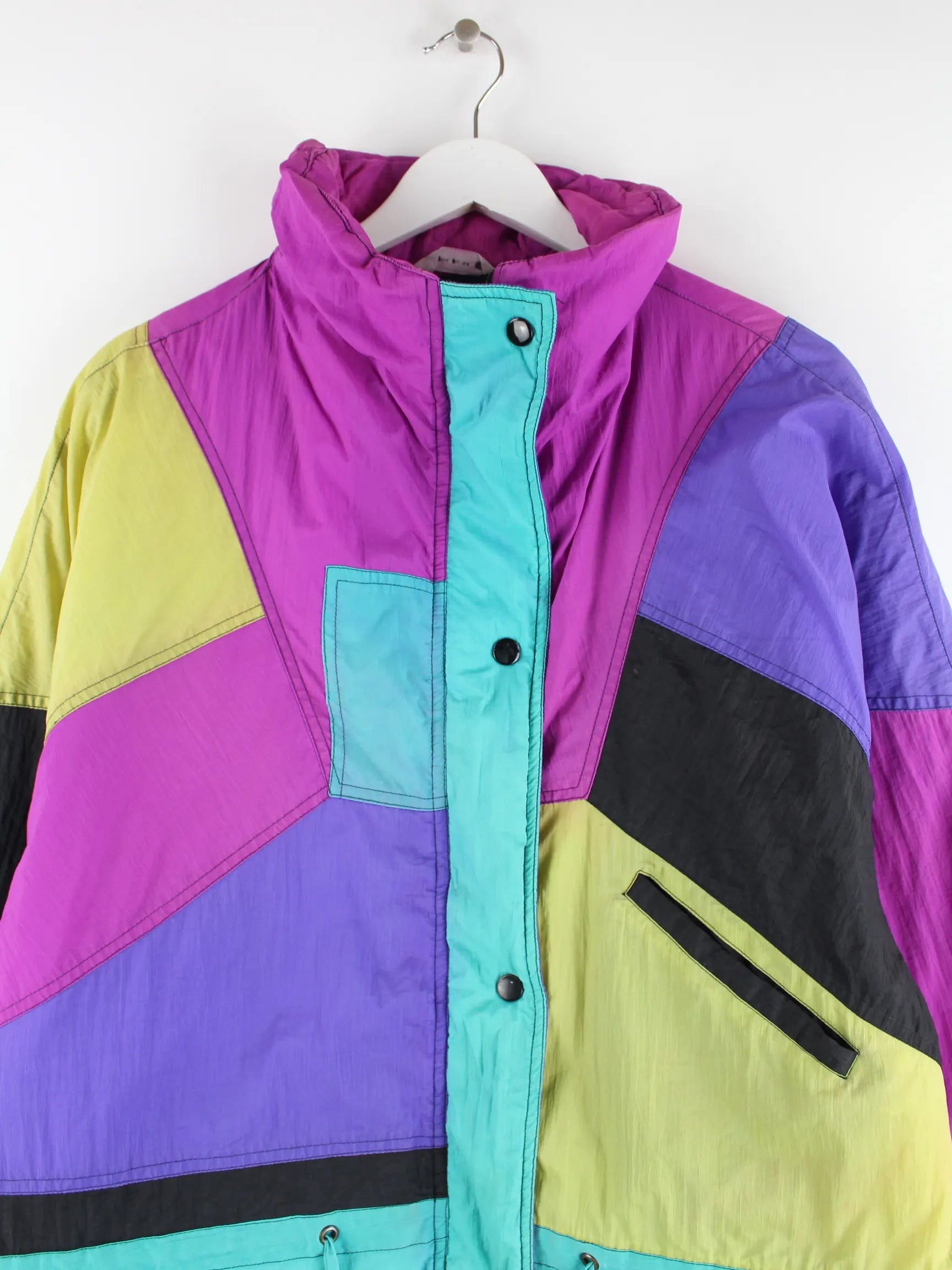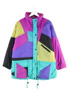 Mehrfarbige Vintage Jacke aus den 80'ern in Größe M. Sie ist aus Synthetik produziert und in gutem Zustand lieferbar.