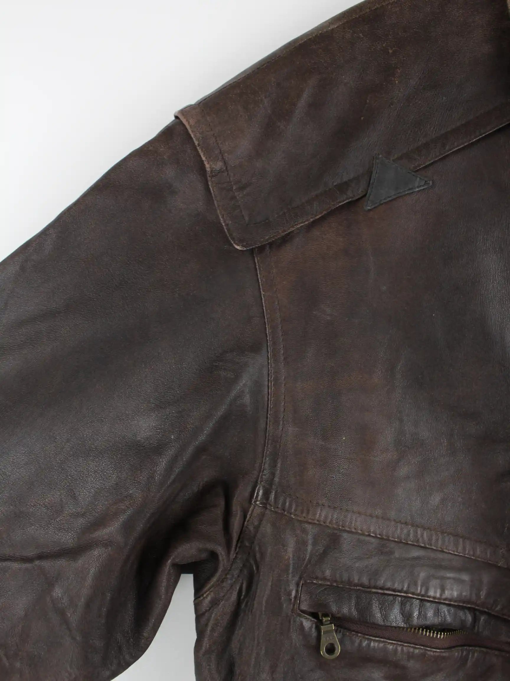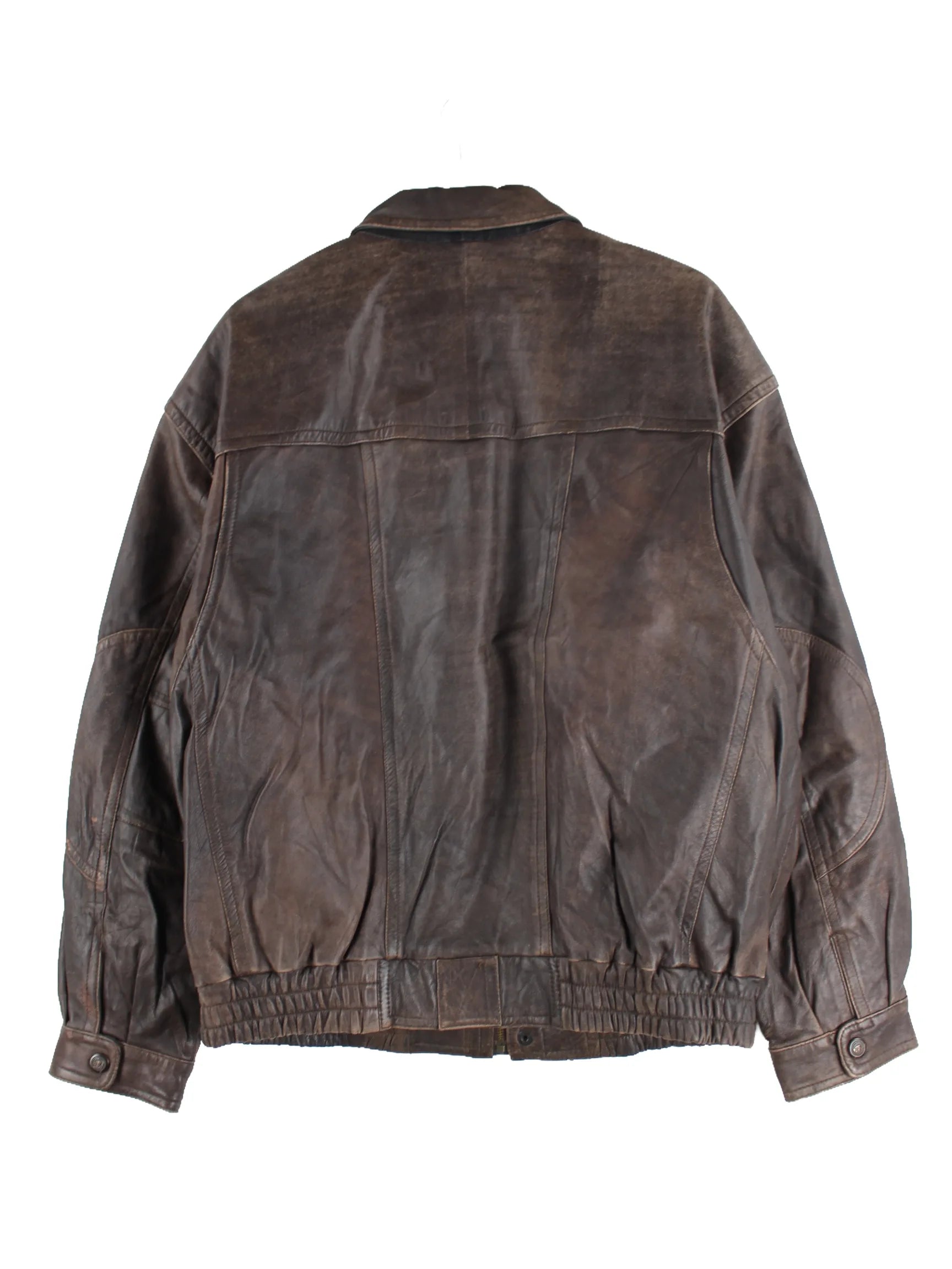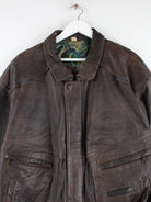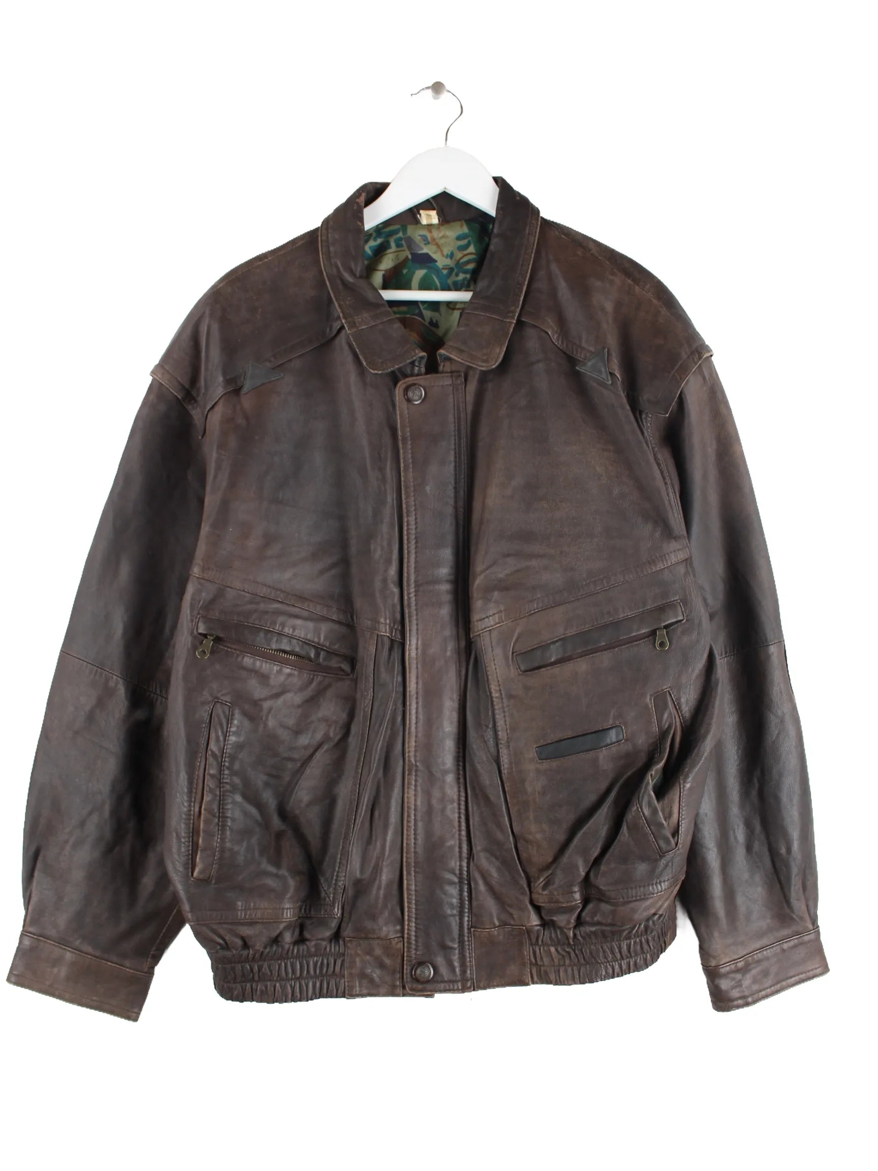 Braune Vintage Jacke aus den 90'ern in Größe XL. Sie ist aus Leder und in gutem Zustand im Bestand.