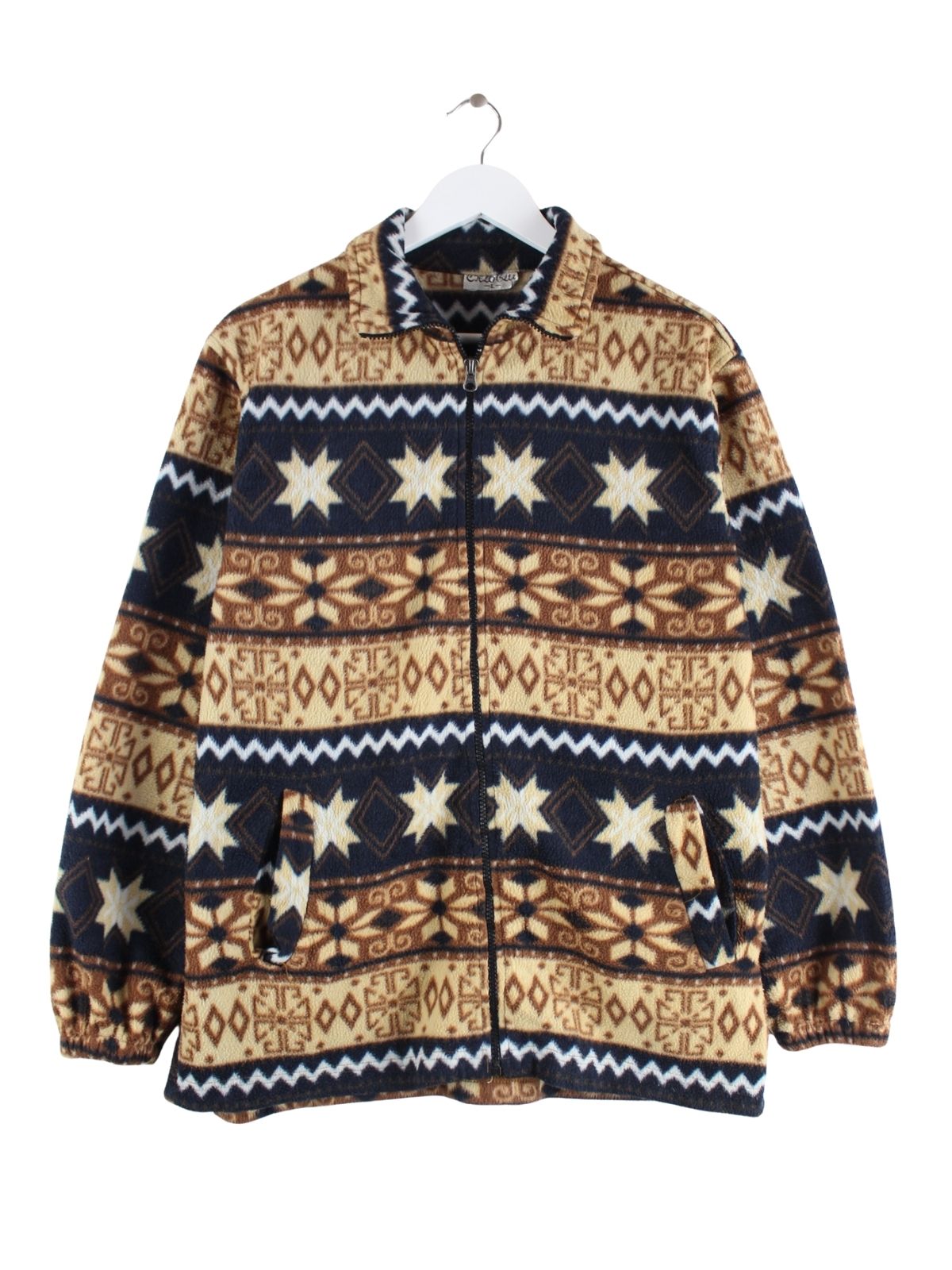 Vintage 90s Crazy Pattern Fleece Jacke Braun L