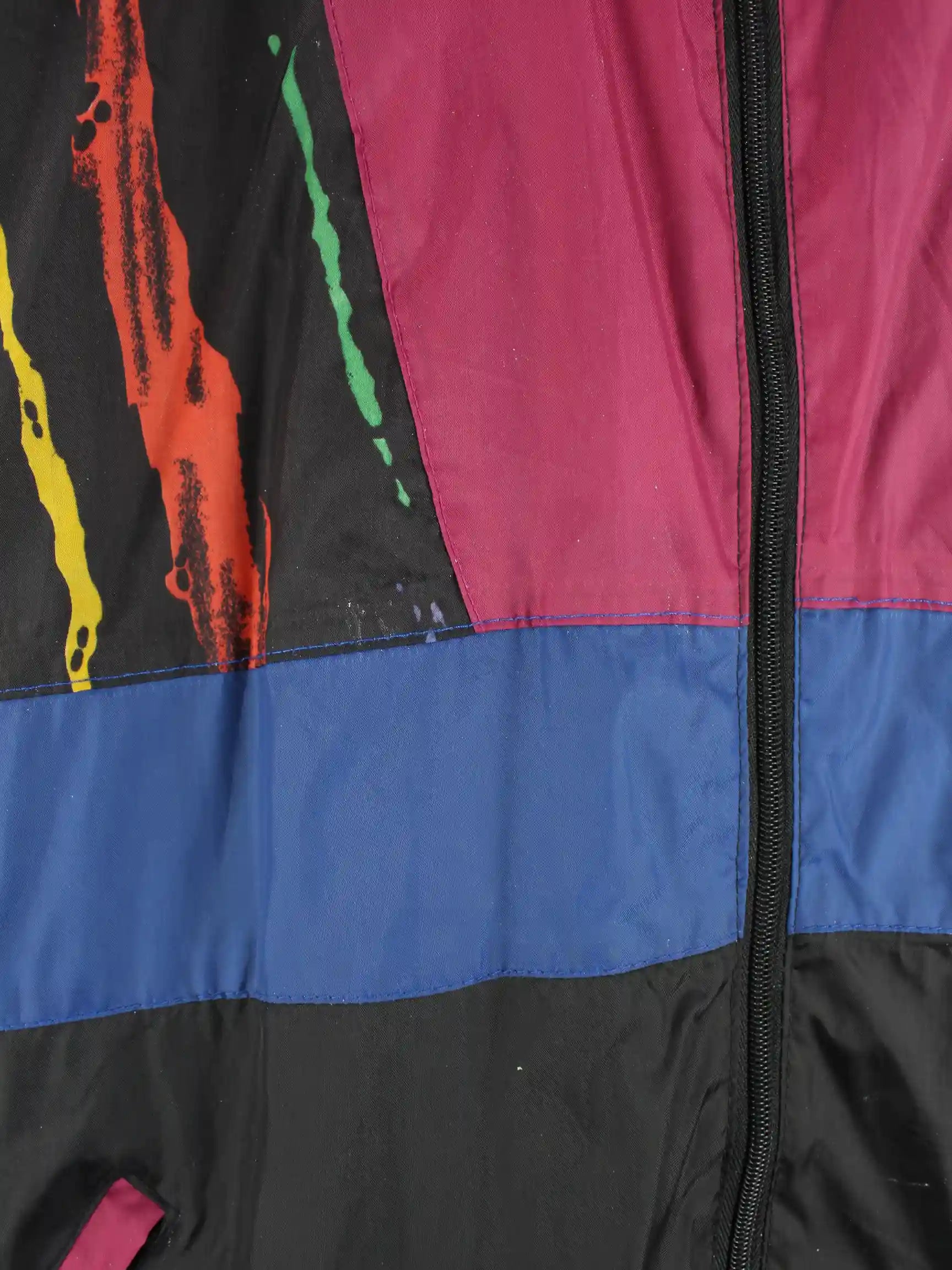Mehrfarbige Vintage Leichte Jacke aus den 90'ern in Größe 3XL. Sie ist aus Synthetik und in gutem Zustand bei uns zu bekommen.
