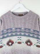 Mehrfarbiger Vintage Pullover aus den 90'ern in Größe L. Er ist aus einer Wollmischung gemacht und in sehr gutem Zustand auf Lager.