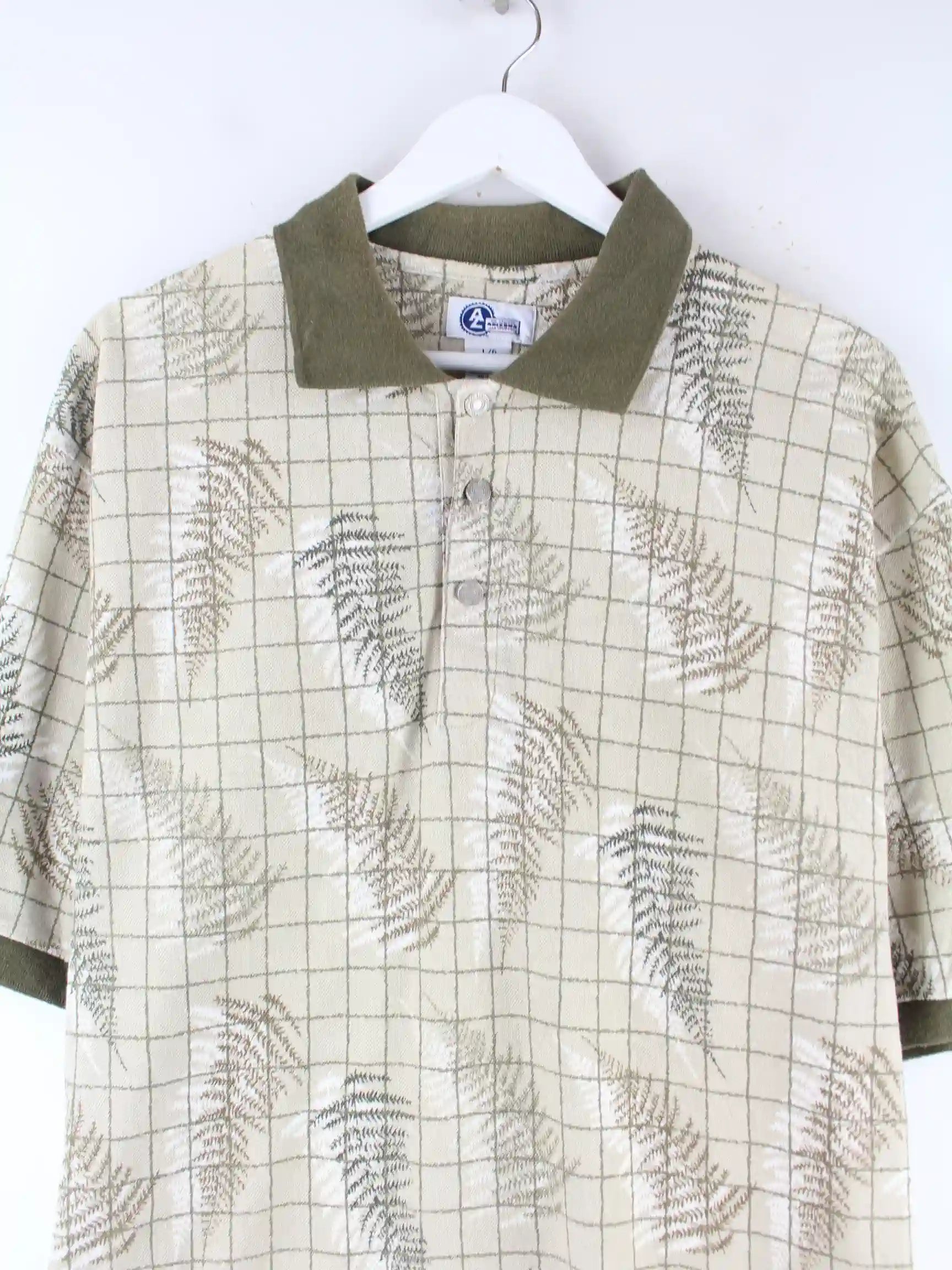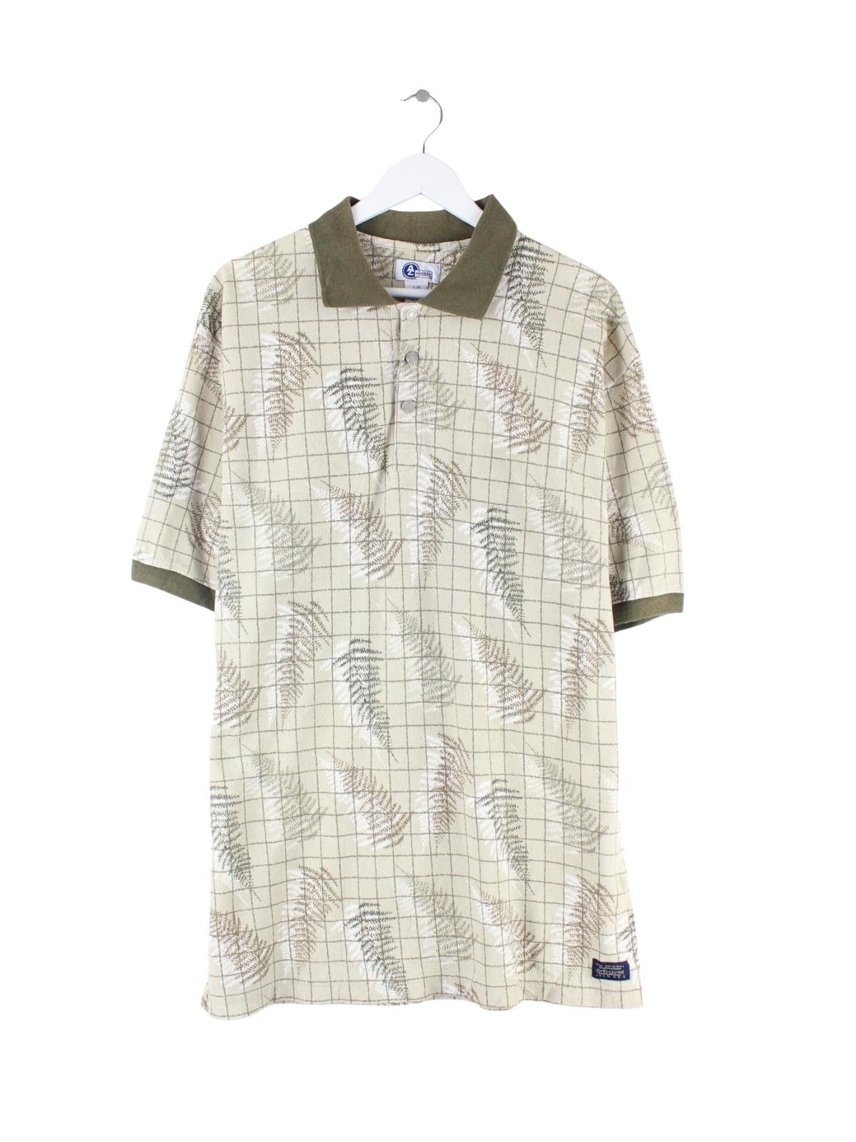 Vintage 90s Striped Fern Pattern Polo Grün L
