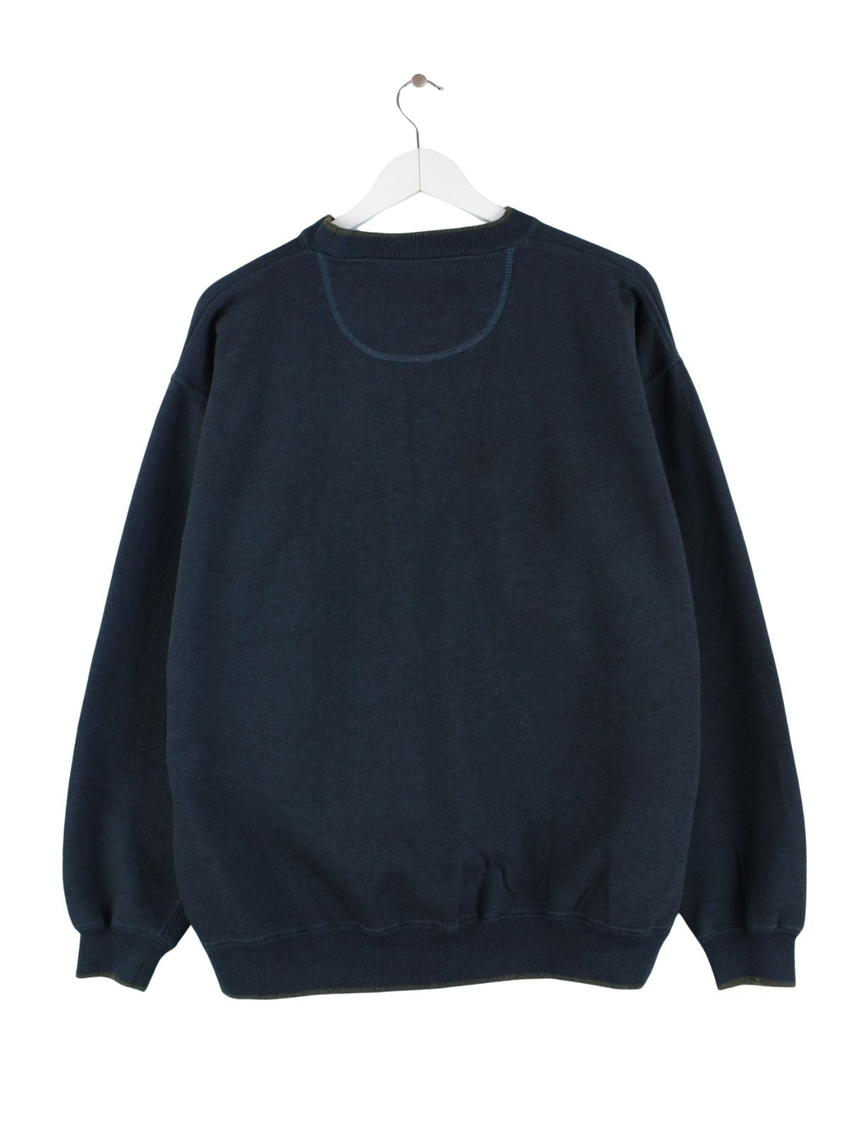 Vintage Sweater in Größe L aus den 90'ern. Er ist aus einer Baumwollmischung gefertigt und in Blau in Stock.
