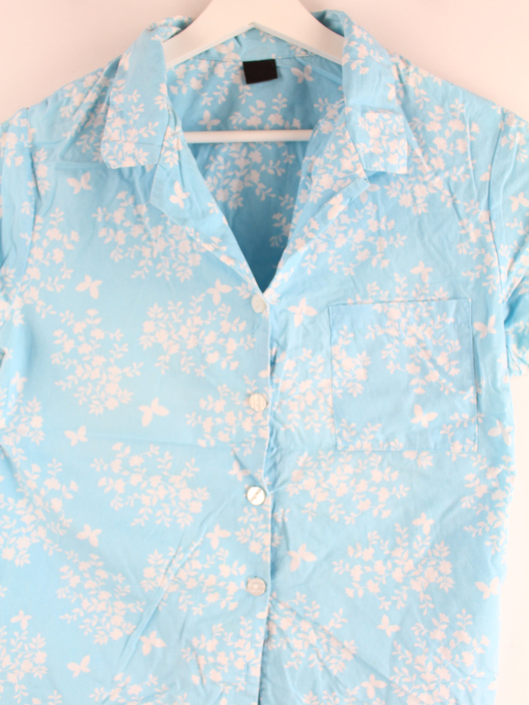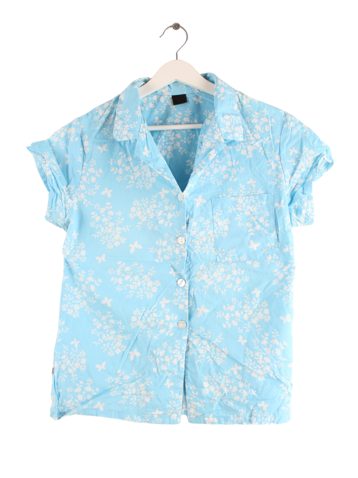 Vintage Damen Hawaii Kurzarm Hemd Blau XS