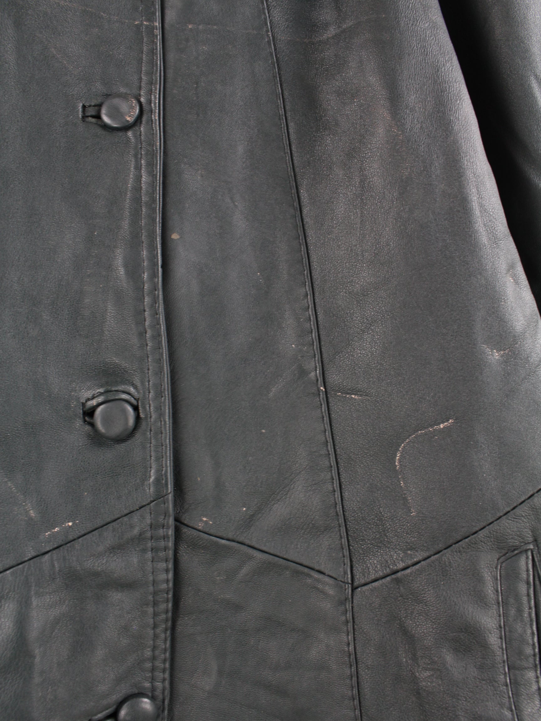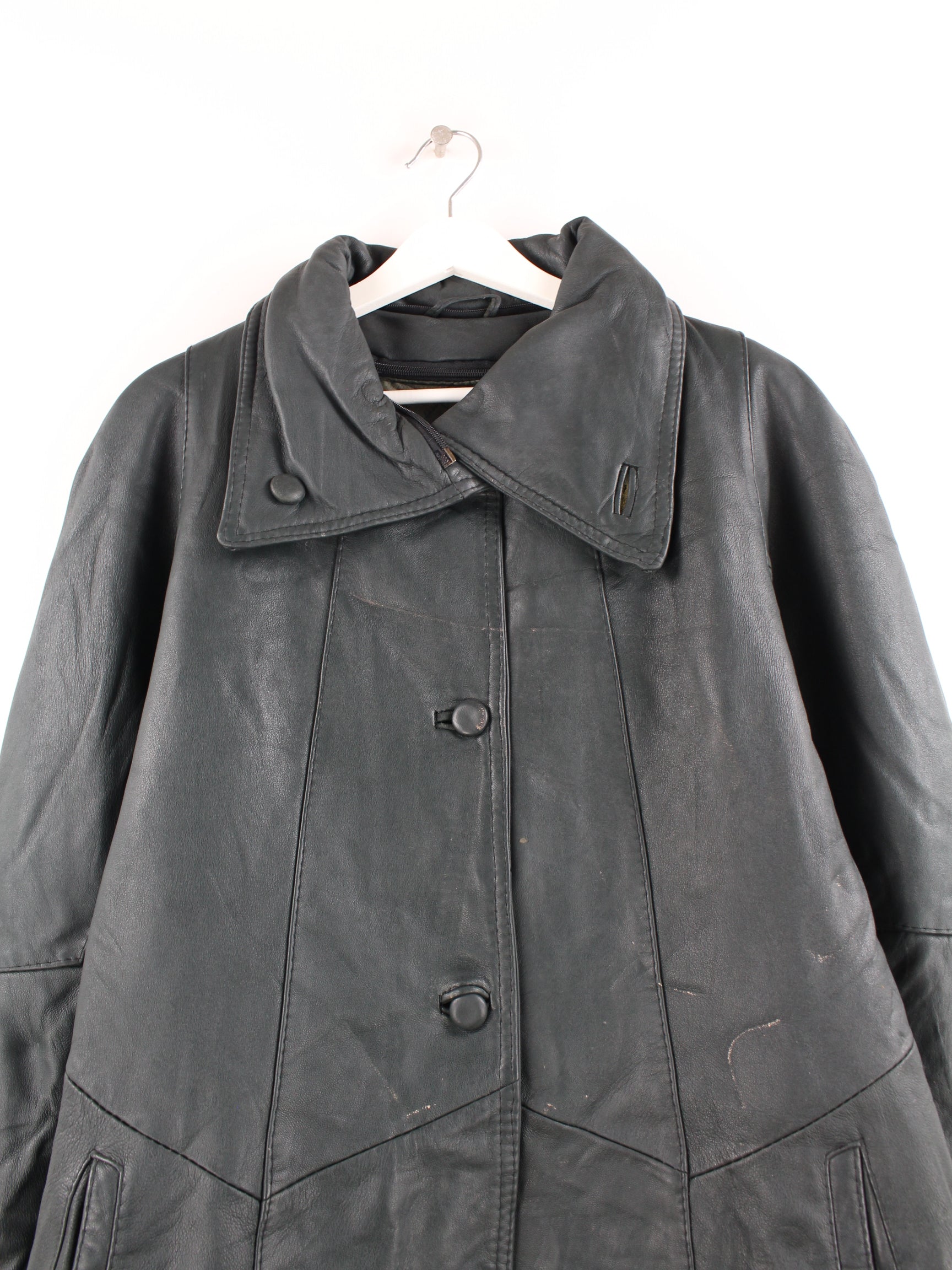 Vintage Leder Mantel Schwarz XL