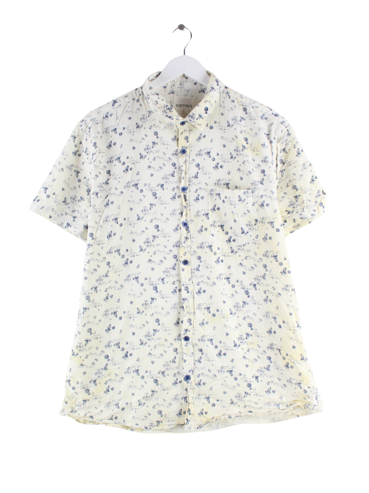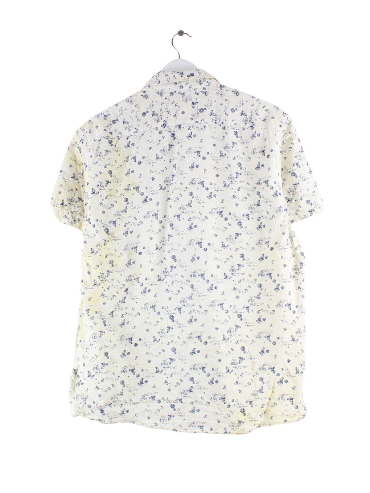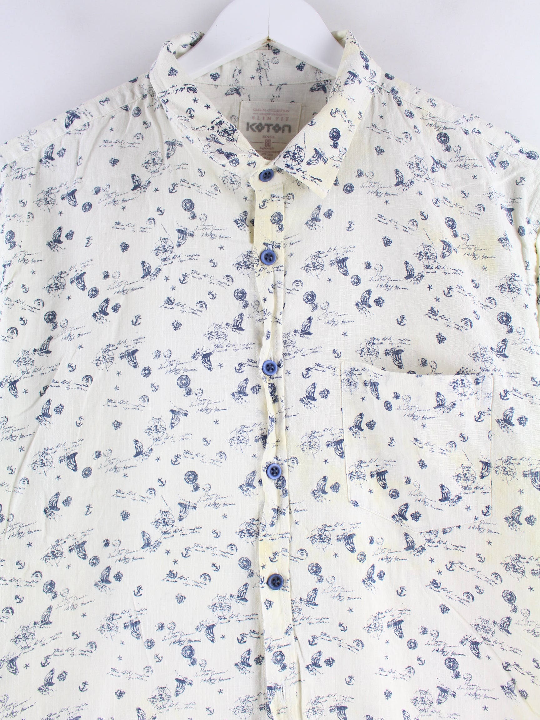Vintage Pattern Slim Fit Kurzarm Hemd Beige L