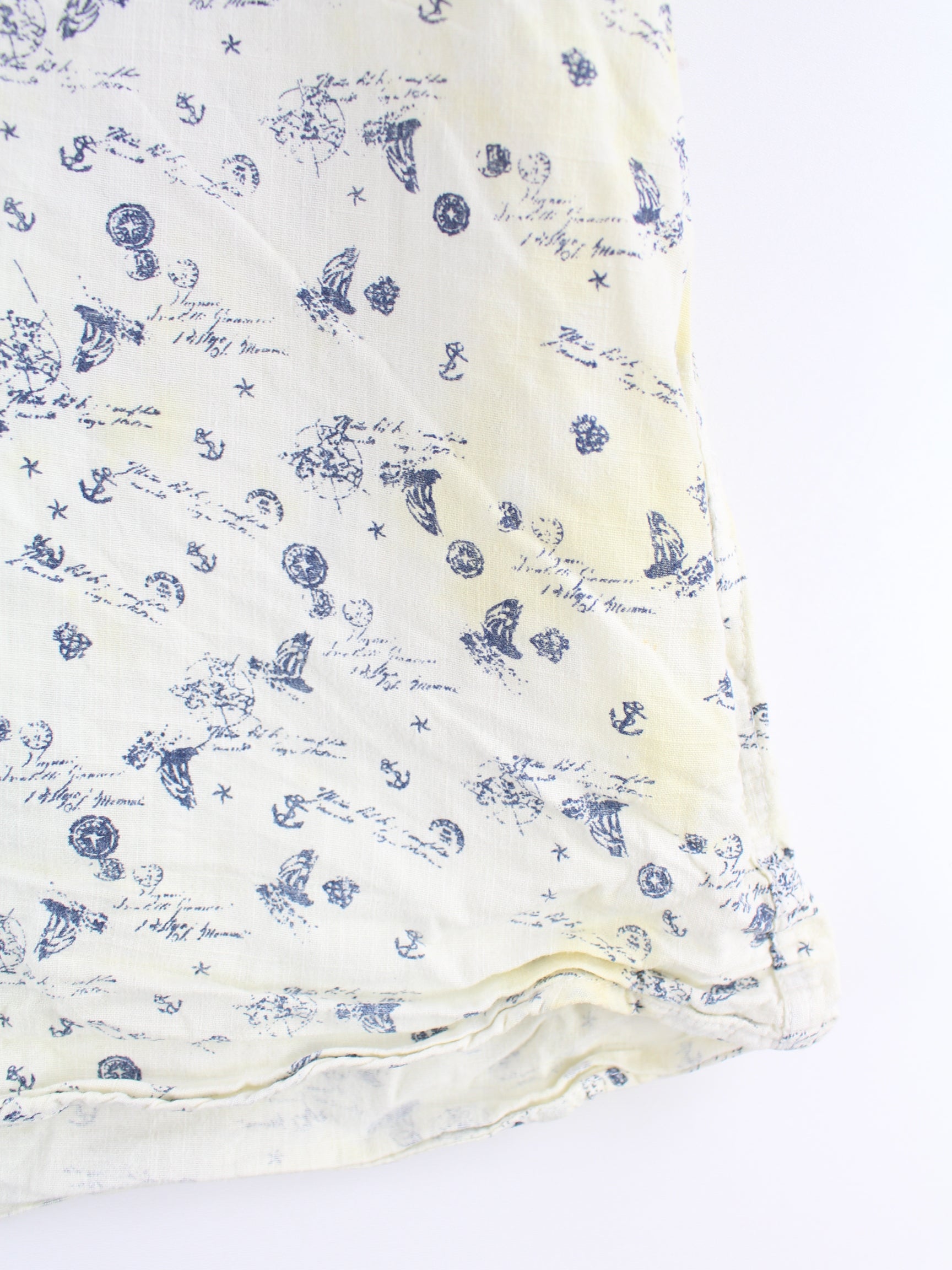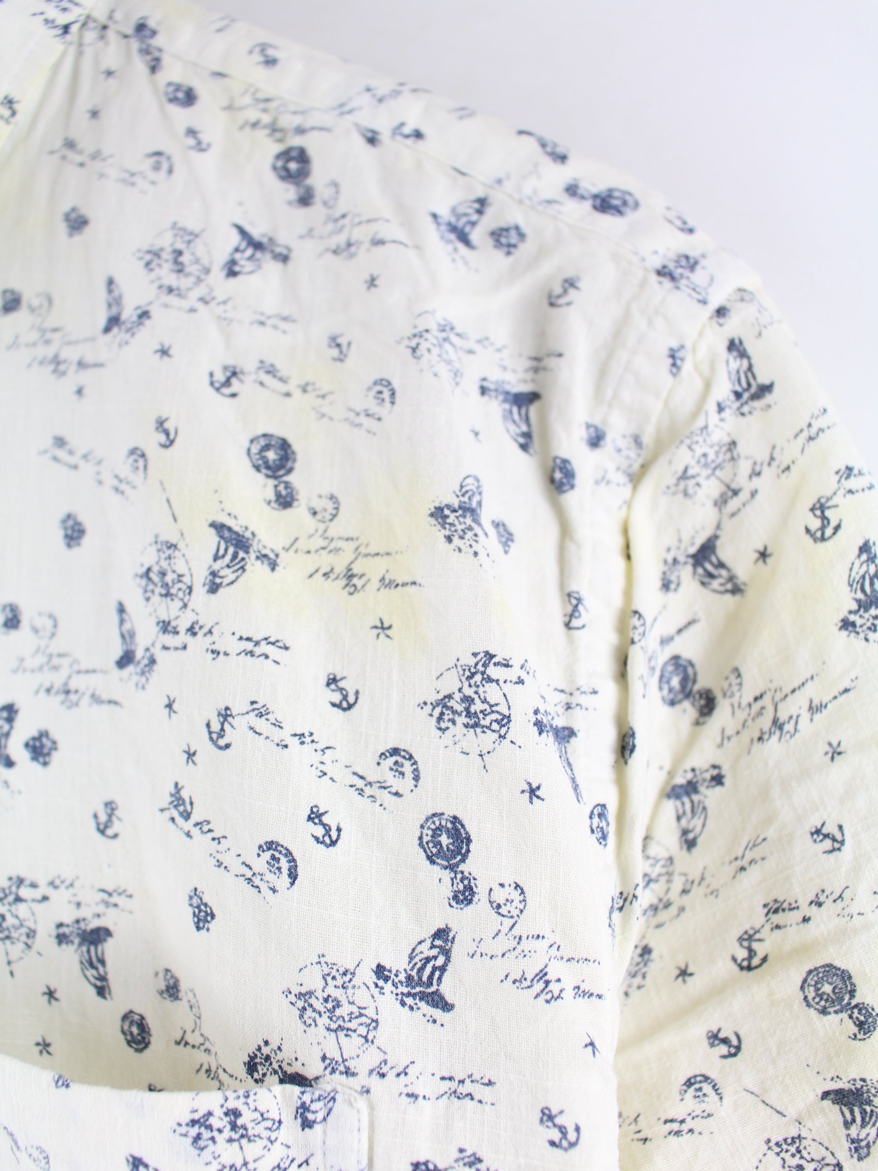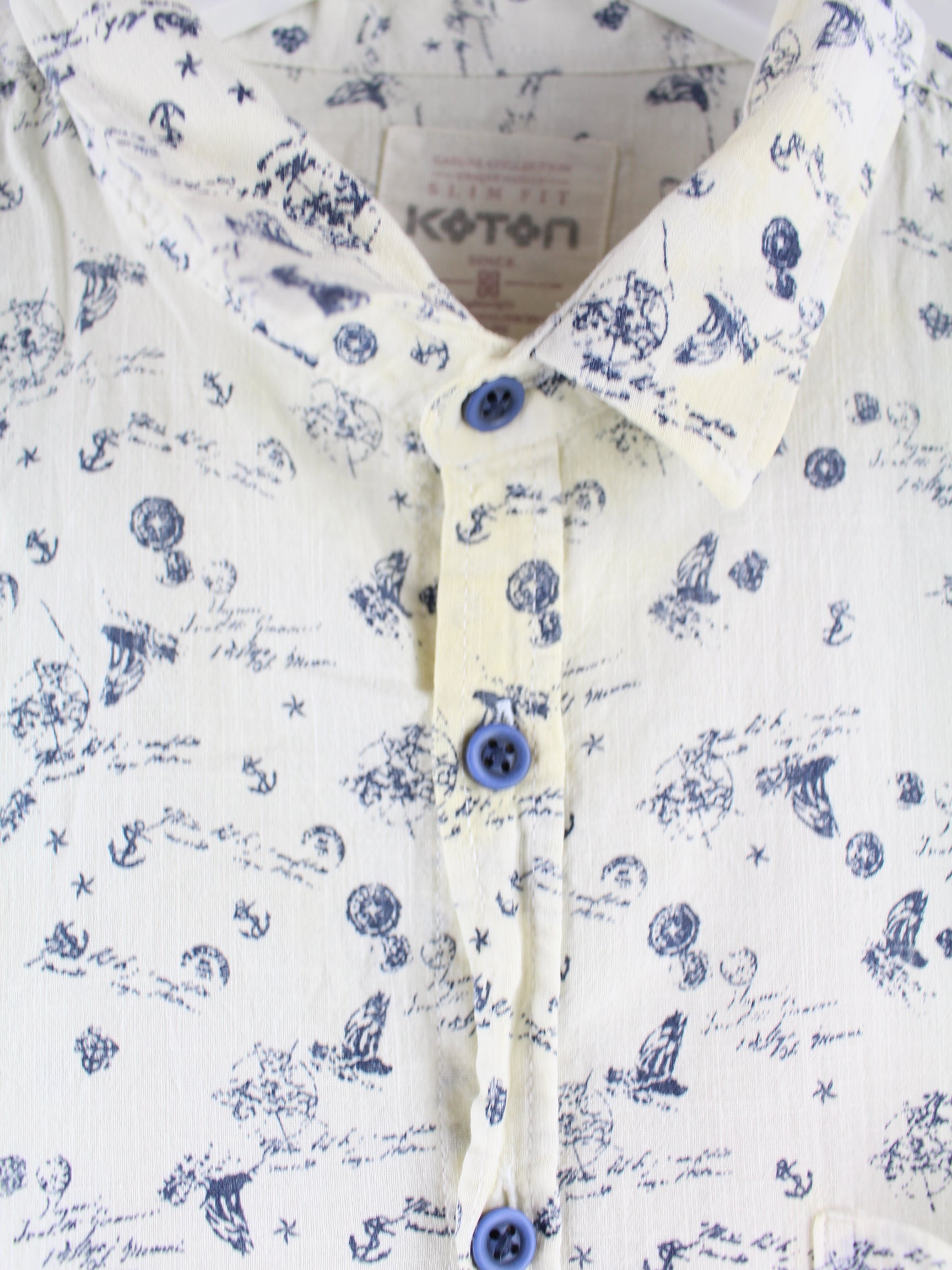 Vintage Pattern Slim Fit Kurzarm Hemd Beige L