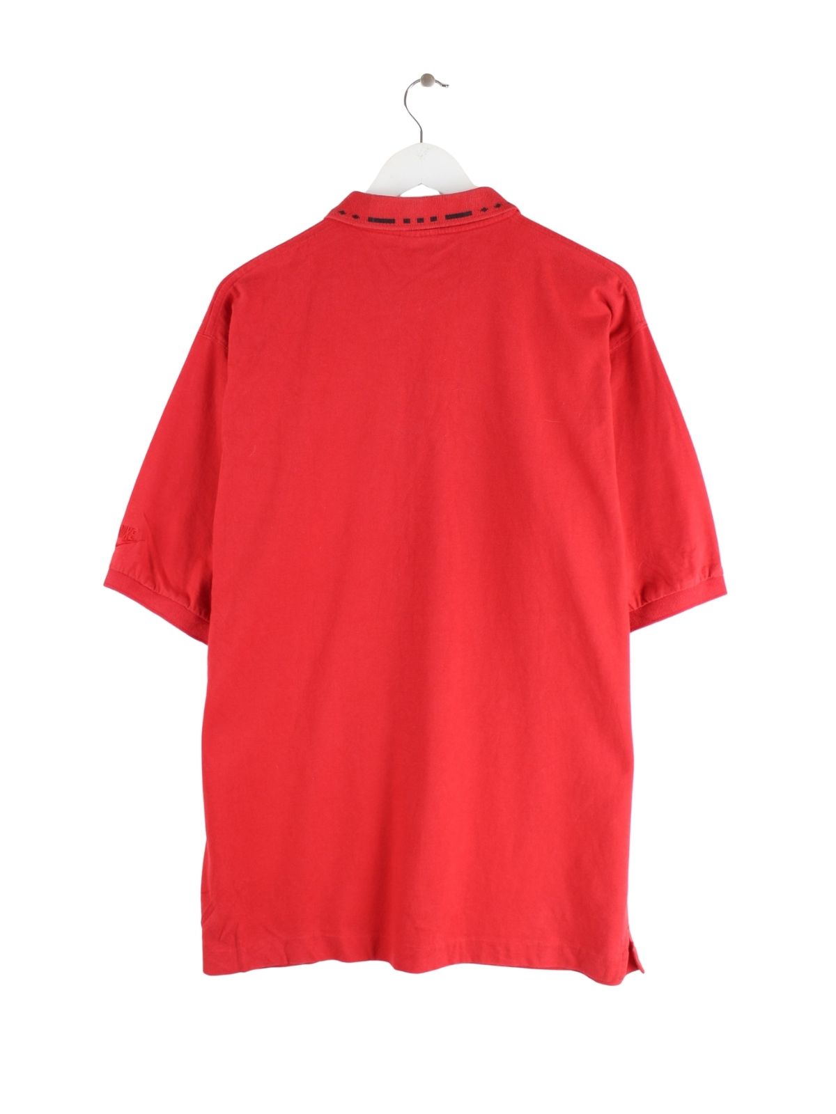 Rotes Poloshirt der Marke Nike aus den 80'ern in Größe XXL. Es ist aus Baumwolle produziert und in gutem Zustand im Bestand.