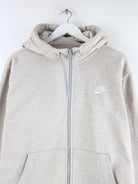 Hoodie von Nike mit durchgehendem Reißverschluß in Größe L. Er ist aus einer Baumwollmischung angefertigt und in Grau bei uns zu bekommen.