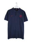 Blaues Poloshirt vom Label Nike in Größe L. Es ist aus Baumwolle hergestellt und in sehr gutem Zustand lieferbar.