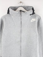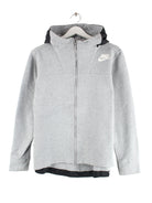 Hoodie von Nike mit Reißverschluß in Größe S. Er ist aus einer Baumwollmischung hergestellt und in Grau in Stock.