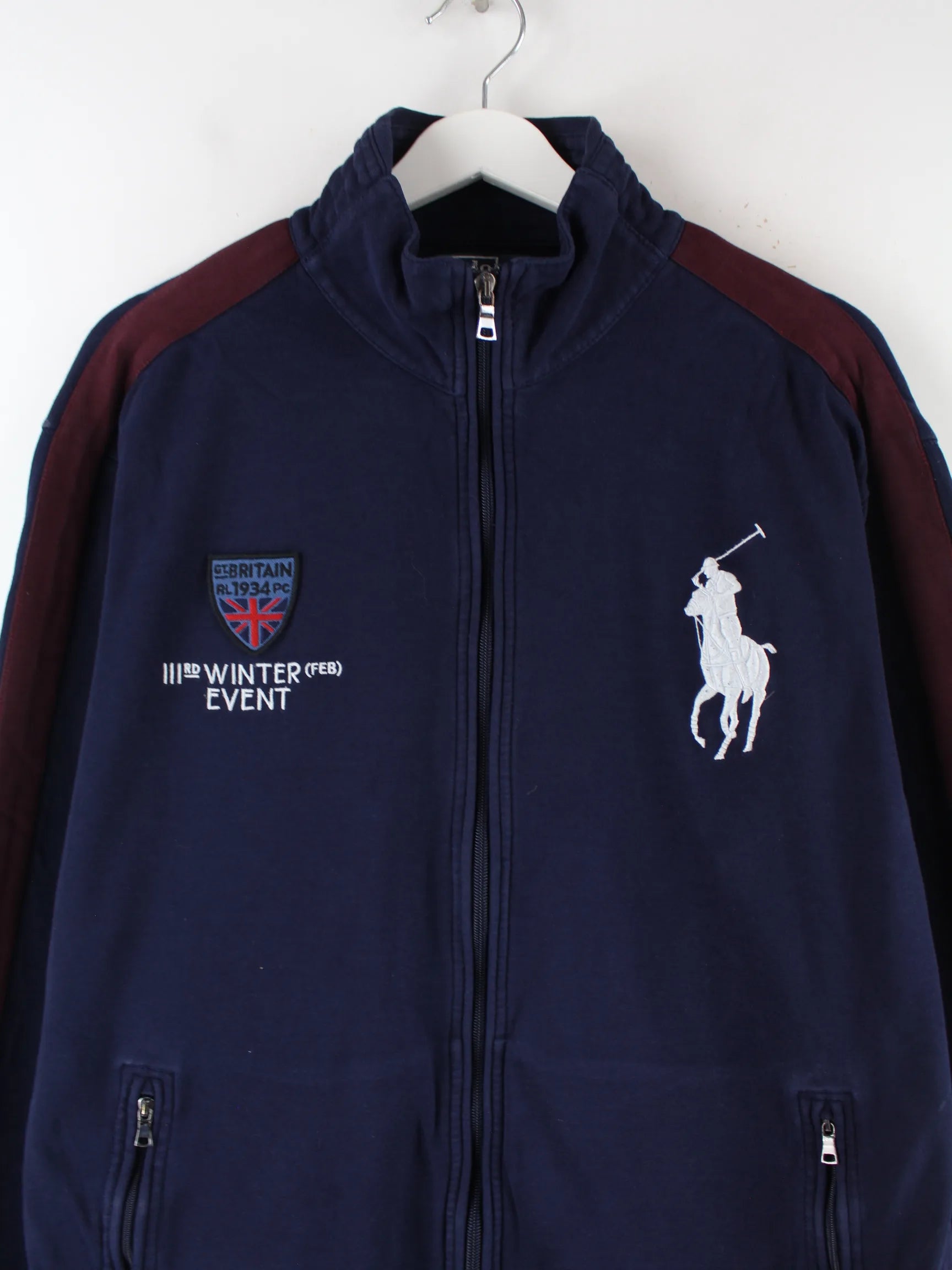 Ralph Lauren 00s Winter Event Britain Embroidered Sweatjacke Blau XL