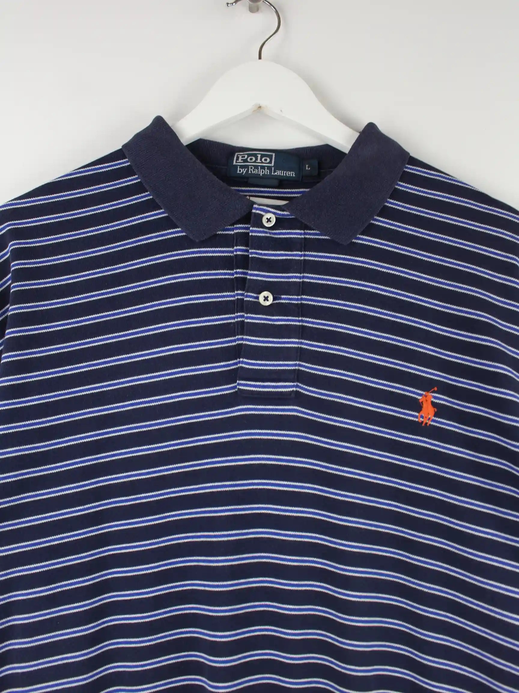 Ralph Lauren 90s Vintage Stripe Polo Blau L