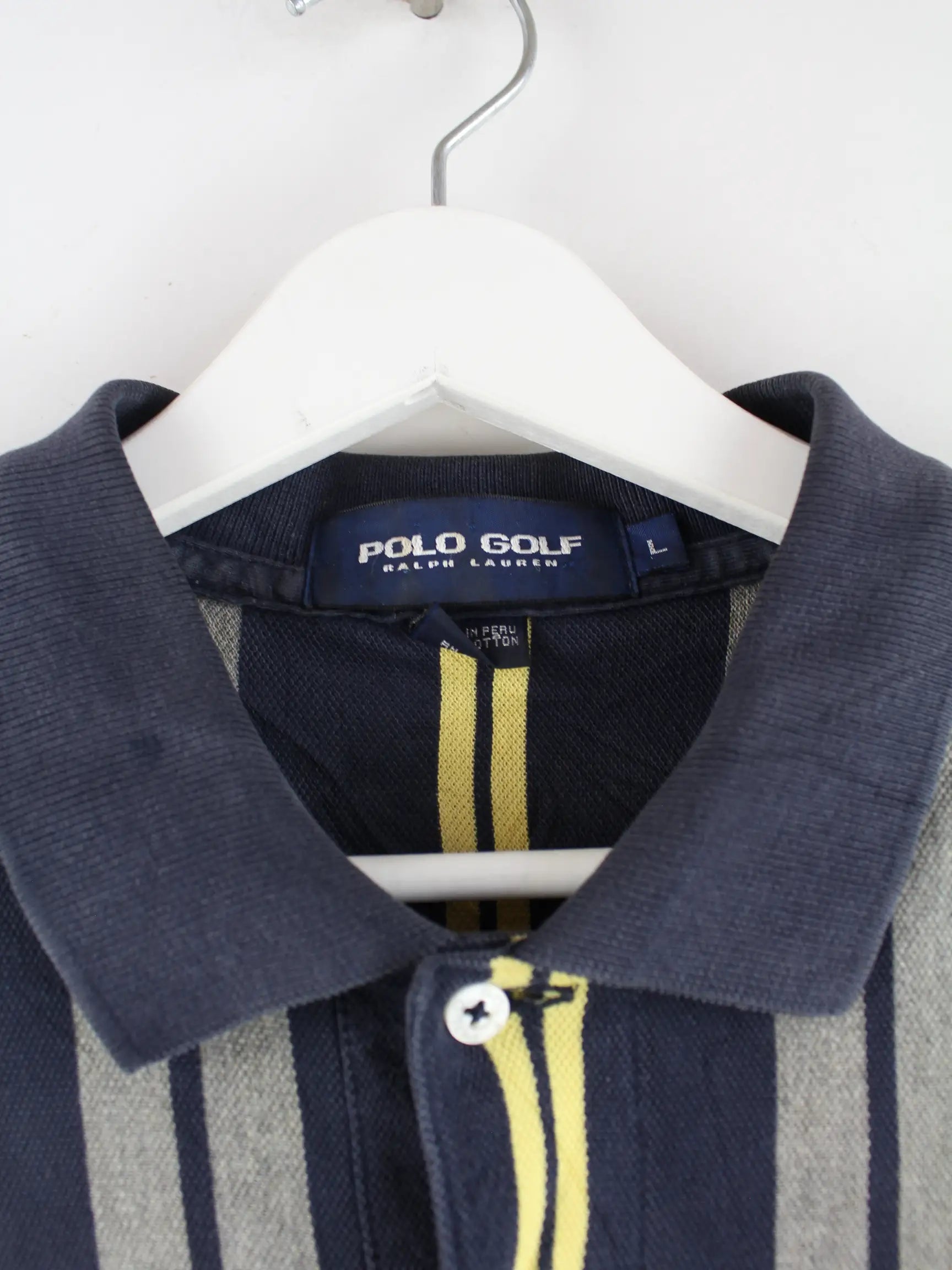 Ralph Lauren 90s Vintage Golf Striped Polo Blau 3XL
