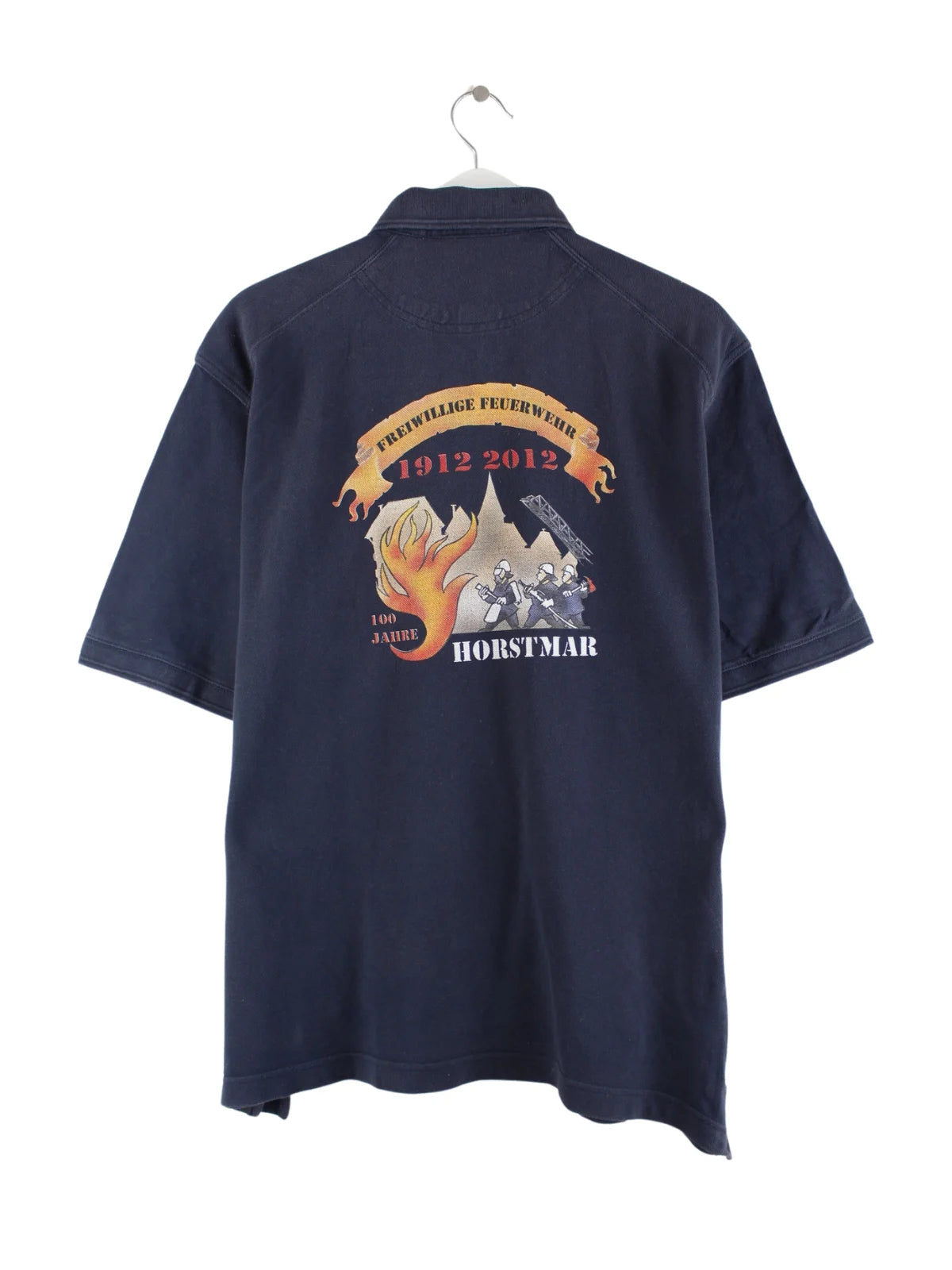 Graues Poloshirt der Marke Russell Athletic in Größe L. Es ist aus Baumwolle gemacht und in gutem Zustand zu bekommen. Mit schickem Firefighters Print.