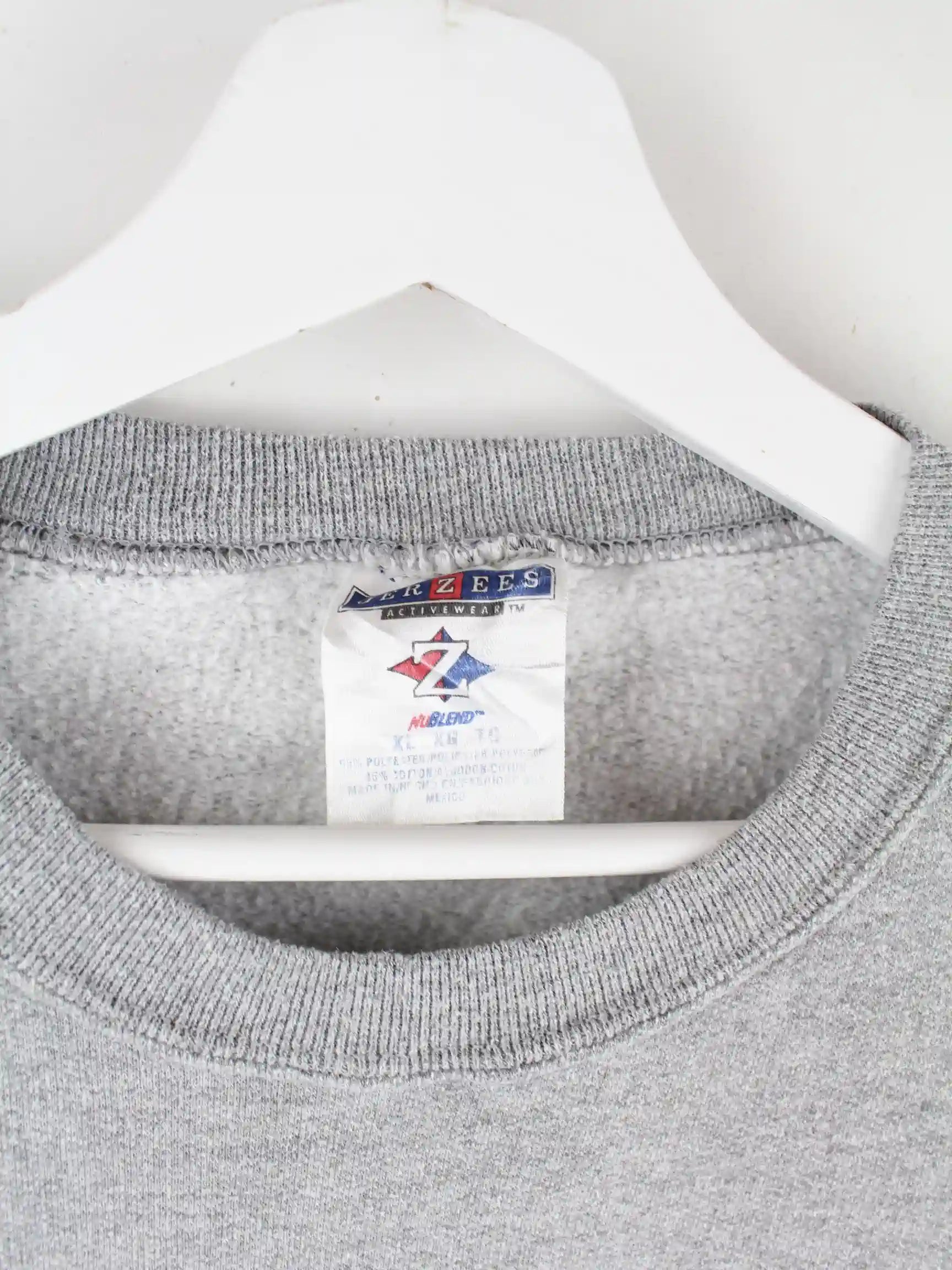 Sweater der Marke Jerzees mit Stick in Größe XL aus den 90'ern. Er ist aus einer Baumwollmischung produziert und in Grau bei uns zu bekommen.