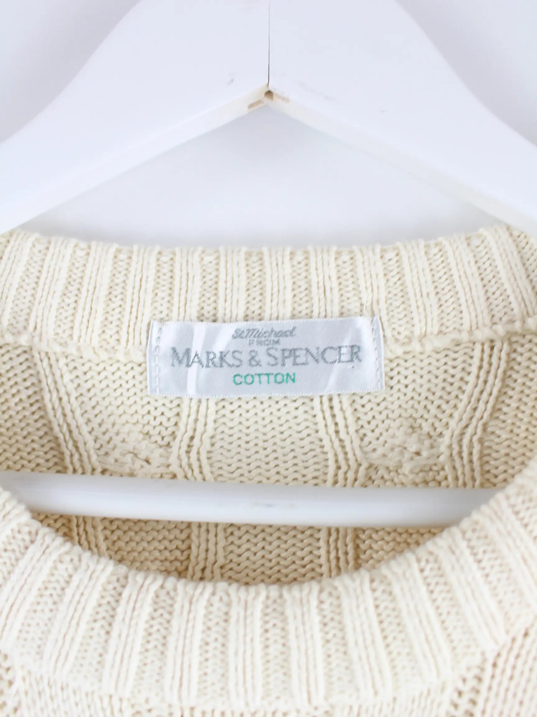 Beigefarbener Pullover der Marke Marks & Spencer aus den 90'ern in Größe L. Er ist aus Baumwolle und in sehr gutem Zustand zu haben.