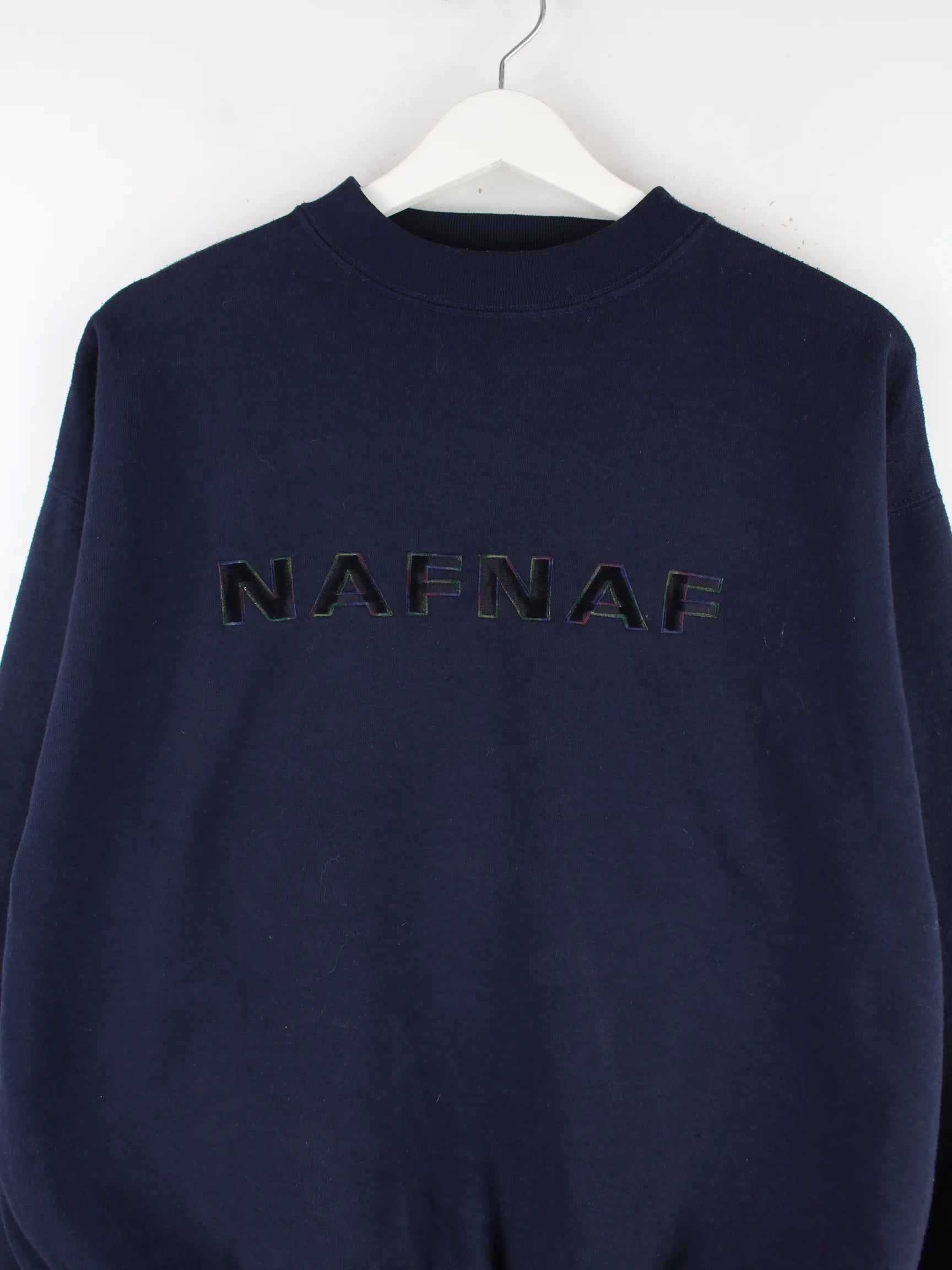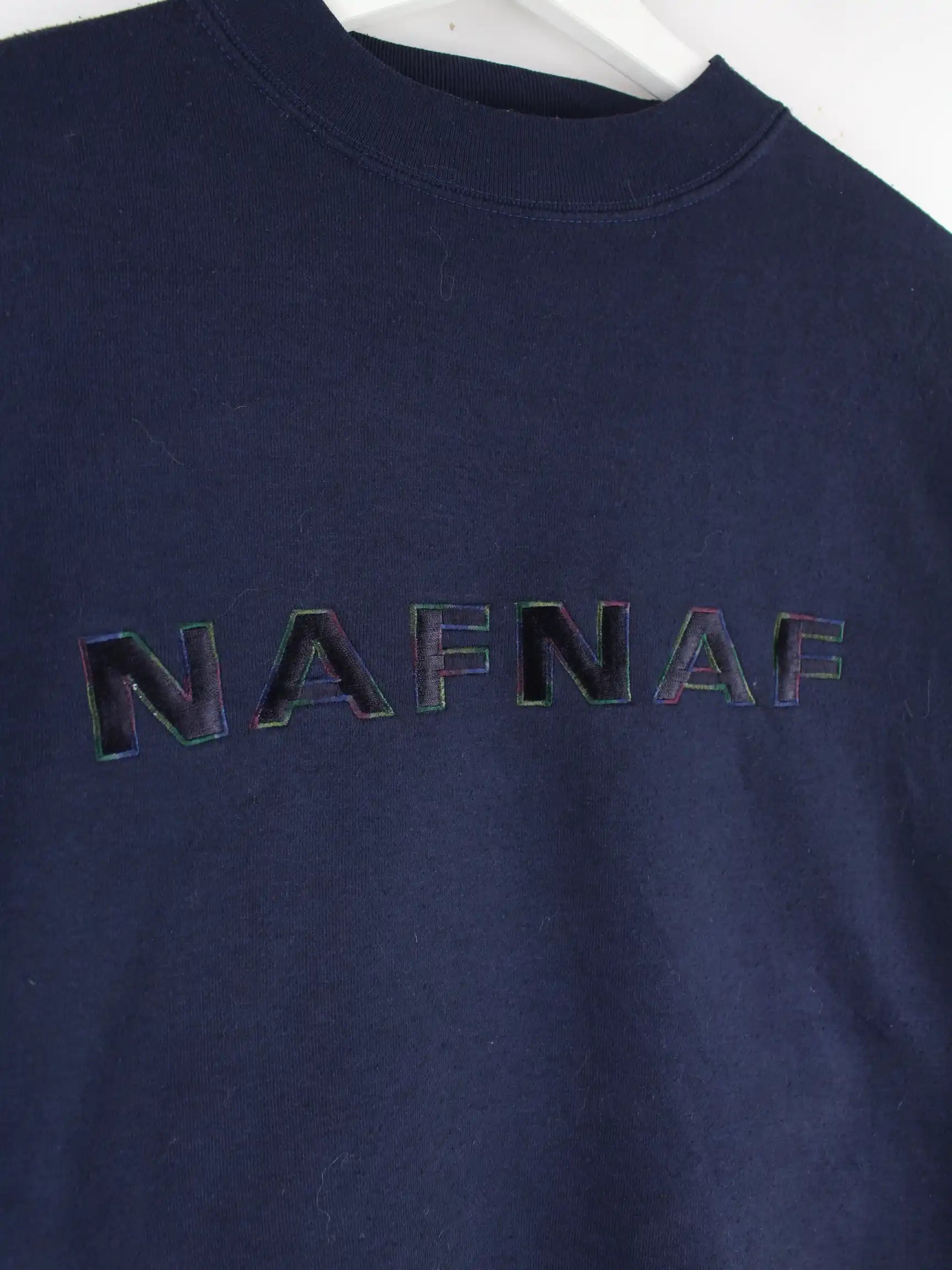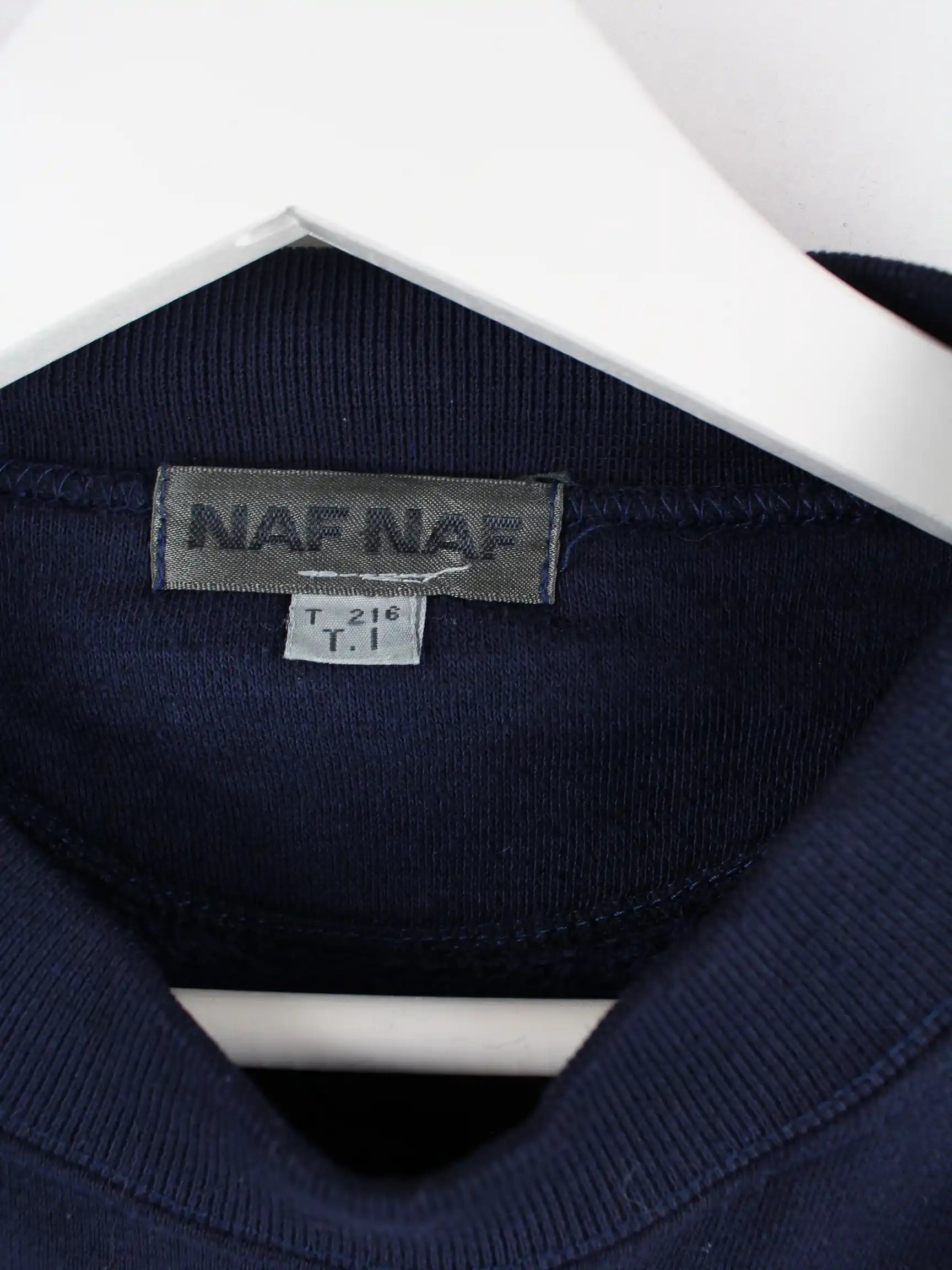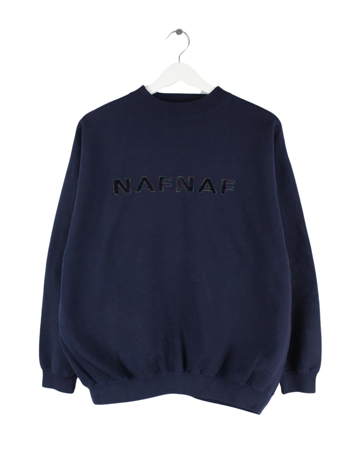 Blauer Sweater mit Stick der Brand Naf Naf in Größe S. Er ist aus einer Baumwollmischung produziert und in gutem Zustand im Angebot.