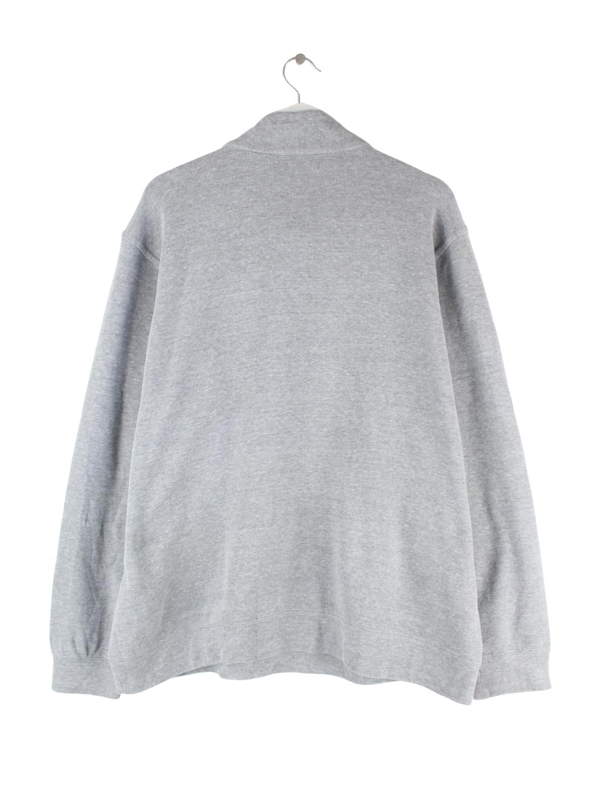 Grauer Vintage Sweater mit Stickereien und kurzem Reißverschluß in Größe XL. Er ist aus einer Baumwollmischung gemacht und in sehr gutem Zustand lieferbar.