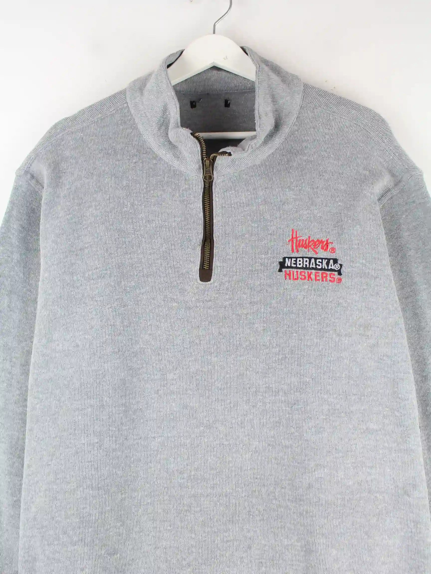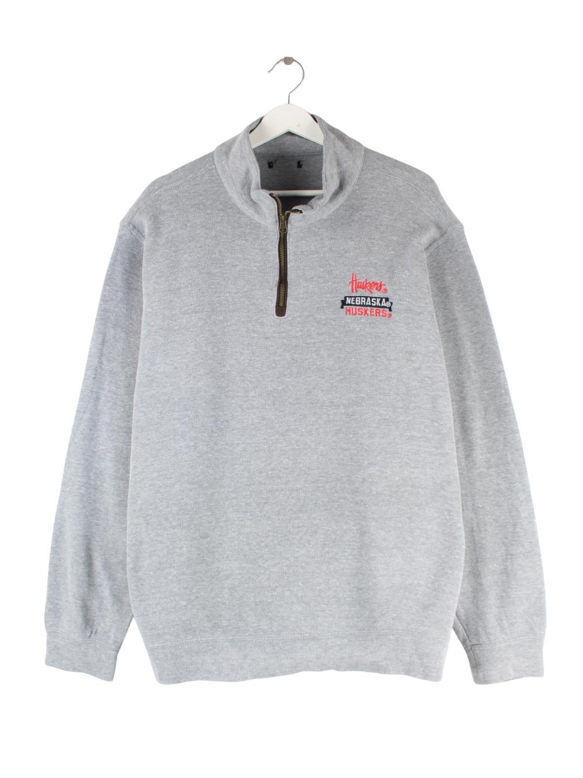 Vintage 00s Nebraska Huskers Embroidered Half Zip Sweater Grau XL