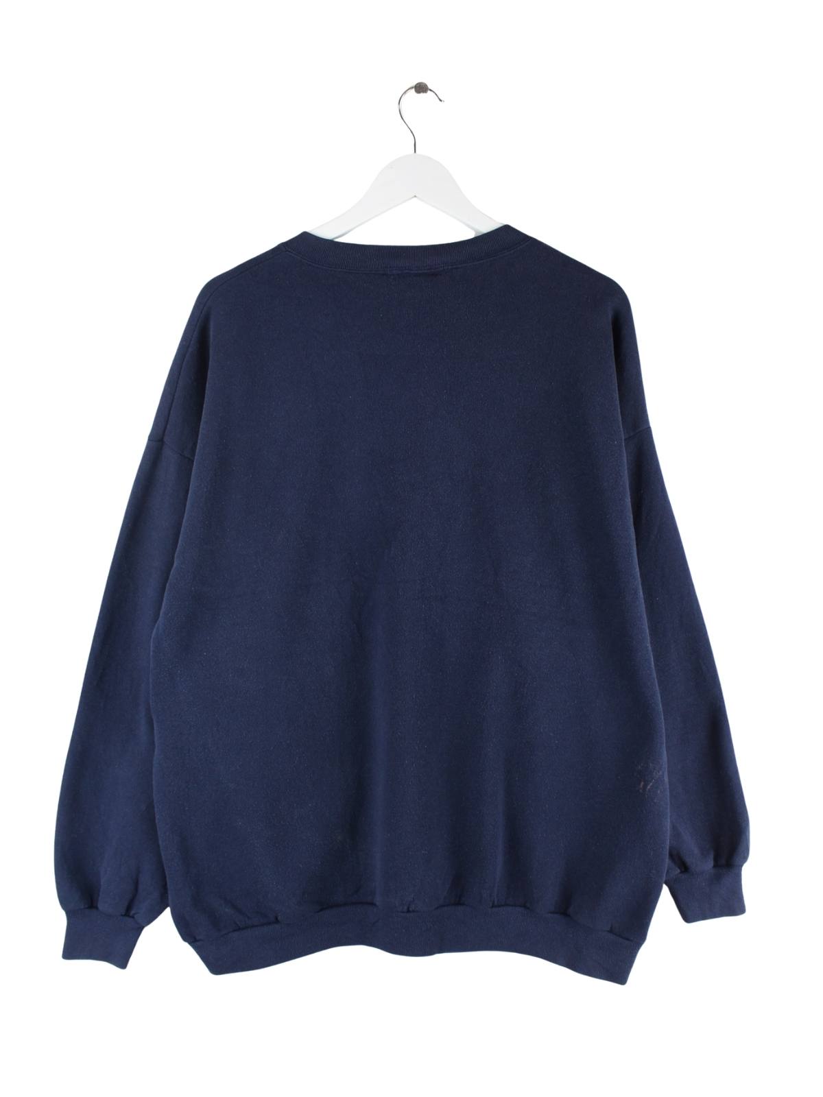 Vintage Sweater in Größe XXL aus den 90'ern. Er ist aus einer Baumwollmischung gemacht und in Blau vorrätig.