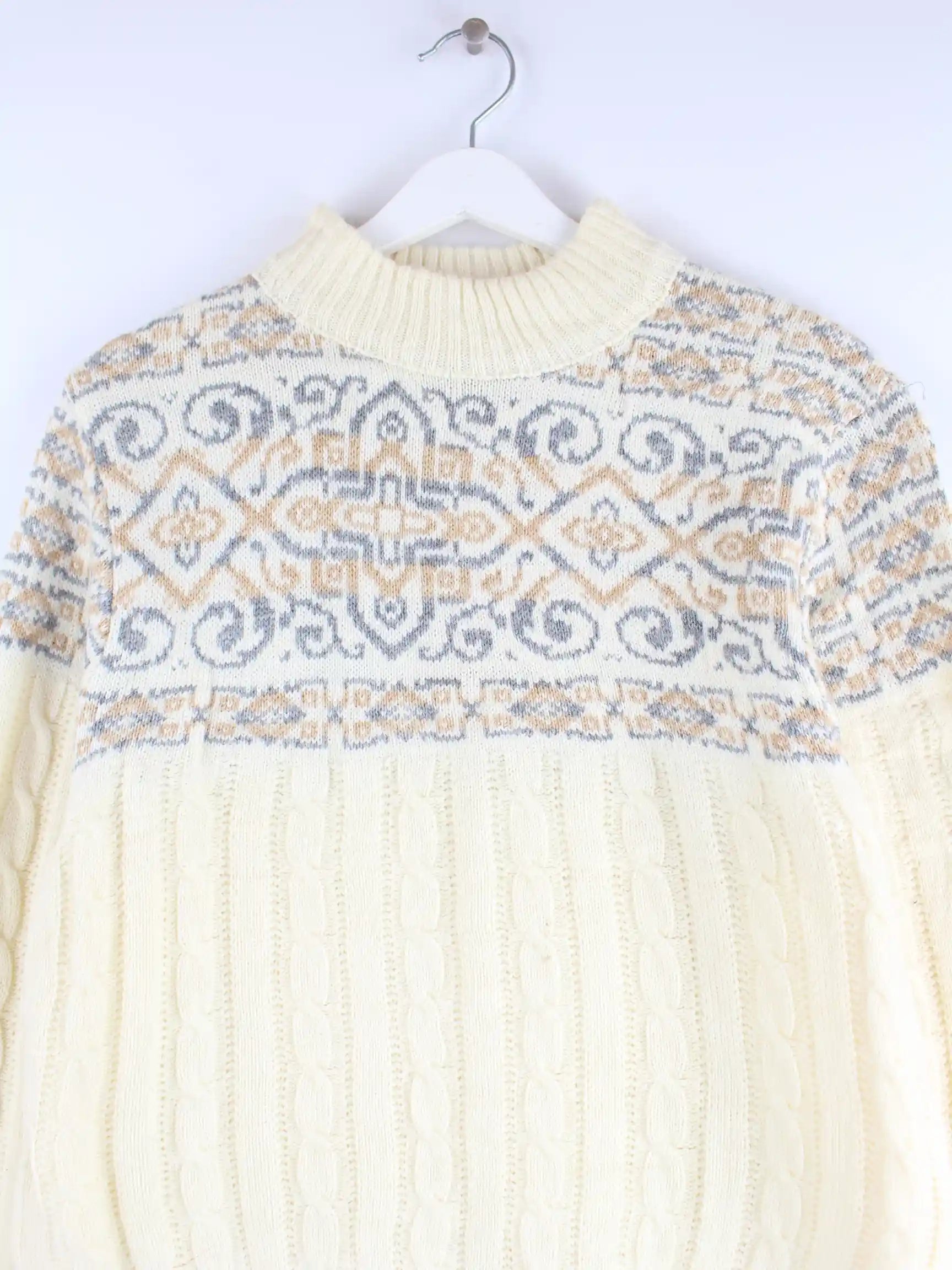 Beigefarbener Vintage Pullover aus den 90'ern in Größe M. Er ist aus Acryl gefertigt und in sehr gutem Zustand im Angebot.