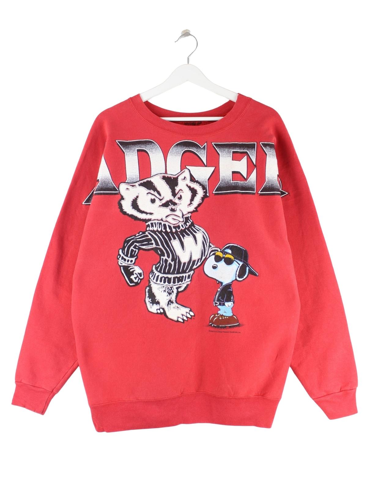 Vintage 90s Wisconsin Badgers x Peanuts Snoopy Print Sweater Rot XL
